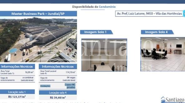 GA119796Galpão para alugar no Fazenda Grande em JundiaíMaster Business Park – Jundiaí/SP Endereço: Av. Prefeito Luiz Latorre, 9450 – Vila das Hortênsias A Santiago Imóveis apresenta duas...