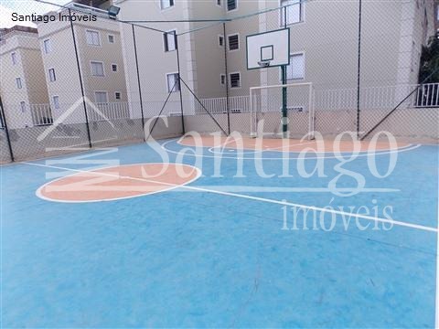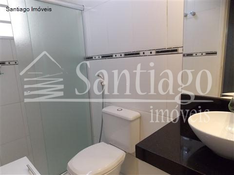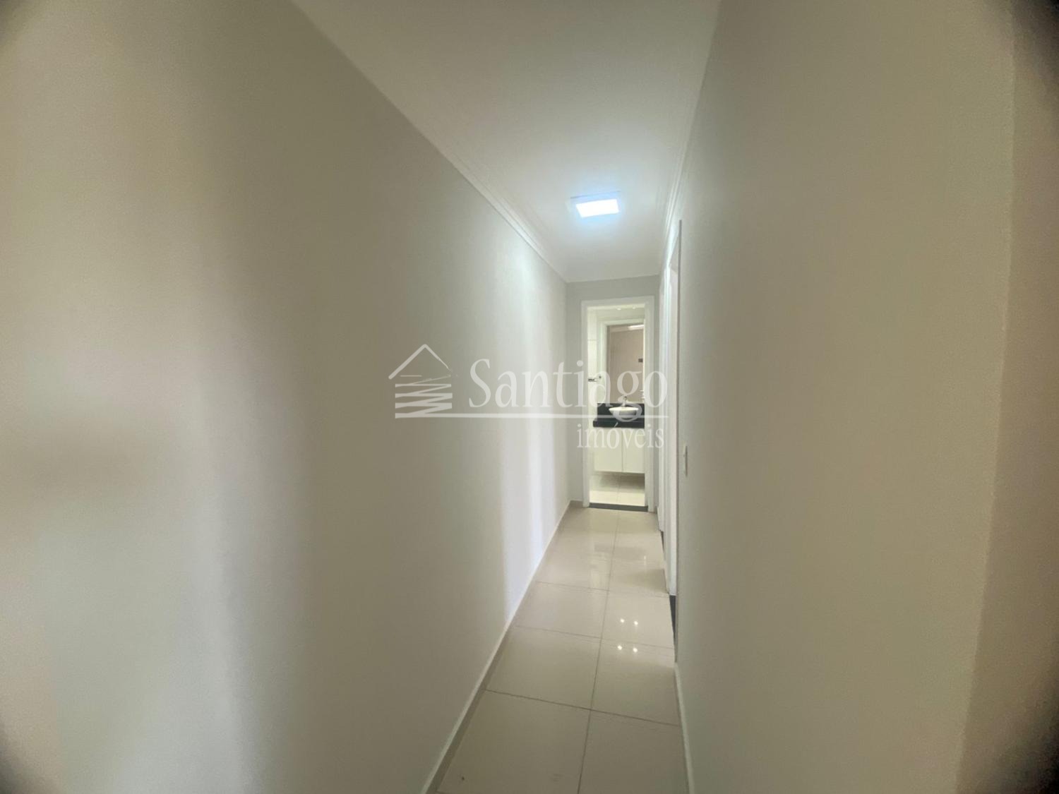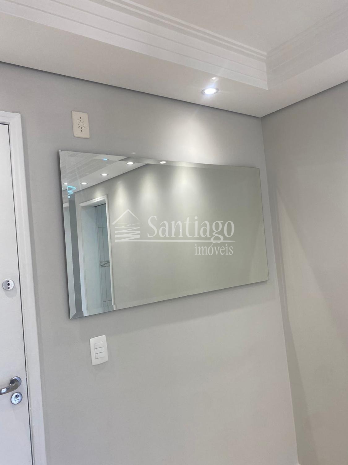 Sala 2 ambientes, cozinha, 2 quartos com armários, 1 banheiro e 2 vagas de garagem.