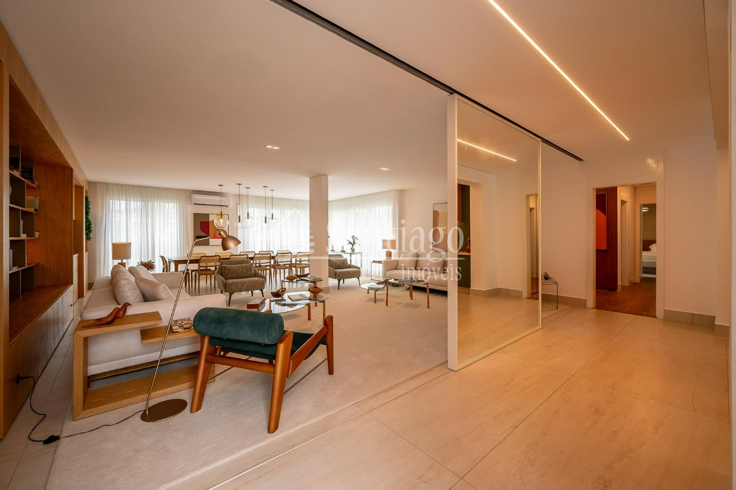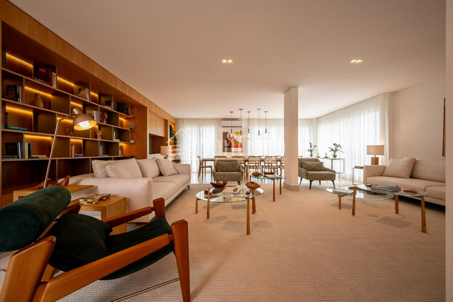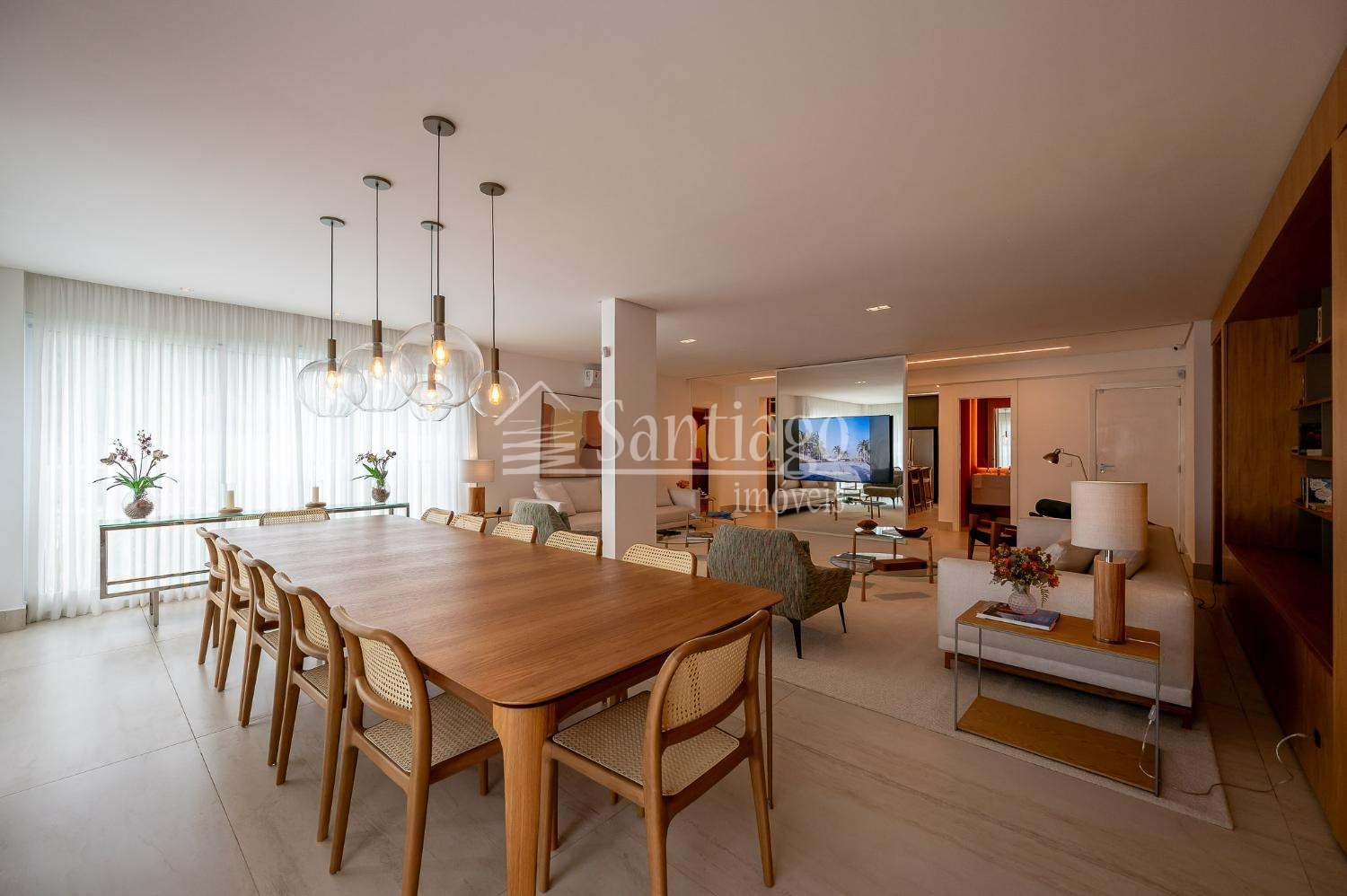 Confortável living climatizado para 3 ambientes com lavabo e integrado varanda, cozinha/copa finamente planejada e com despensa e área de serviço com banheiro.