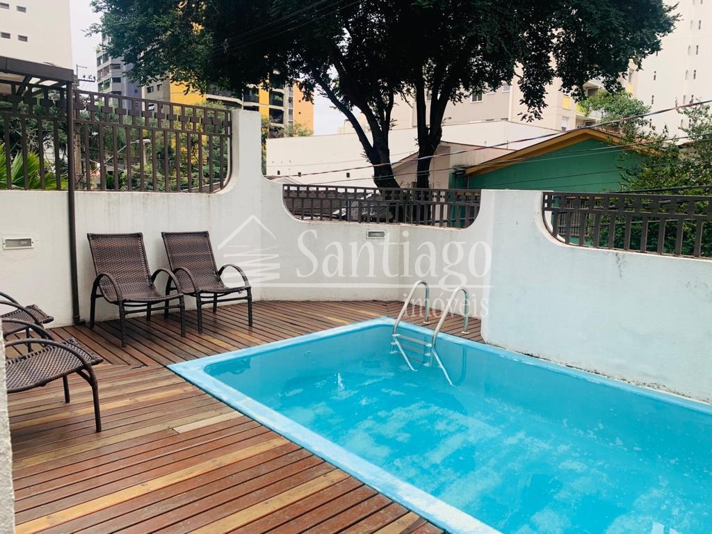 Condomínio com piscina e salão de festas.