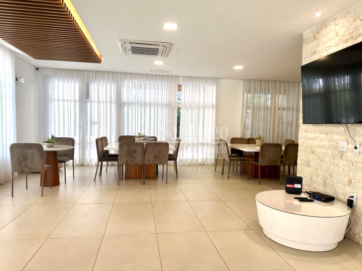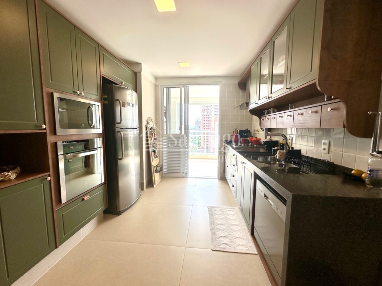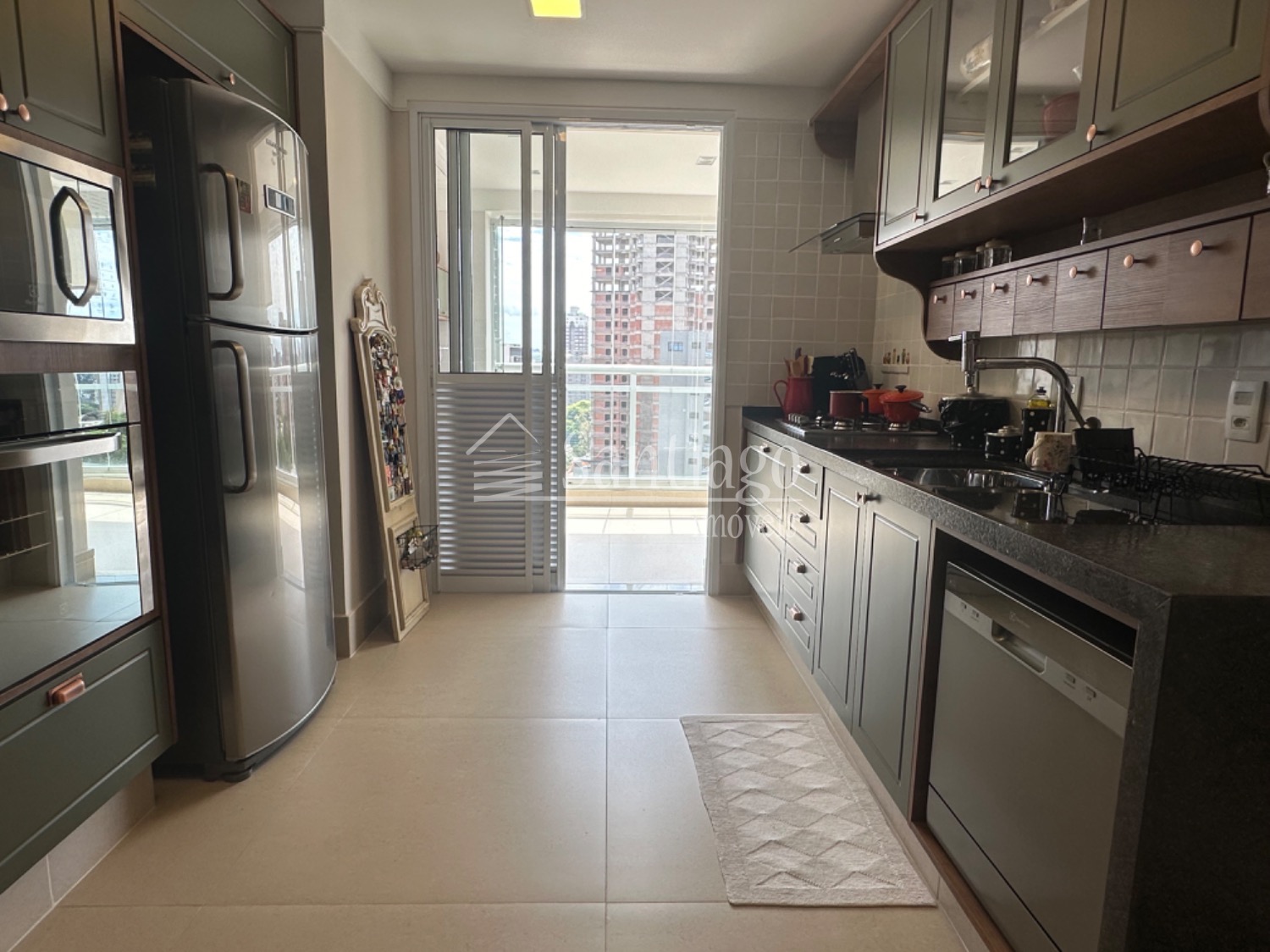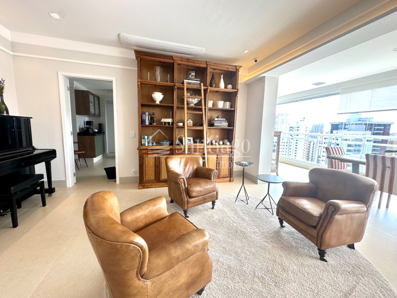 A área gourmet integrada ao living é um dos pontos altos deste apartamento. Com grandes janelas envidraçadas, proporciona uma vista impressionante da cidade, tornando os momentos de lazer ainda mais especiais.