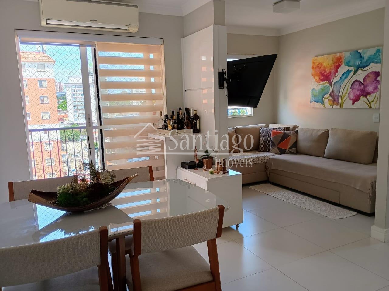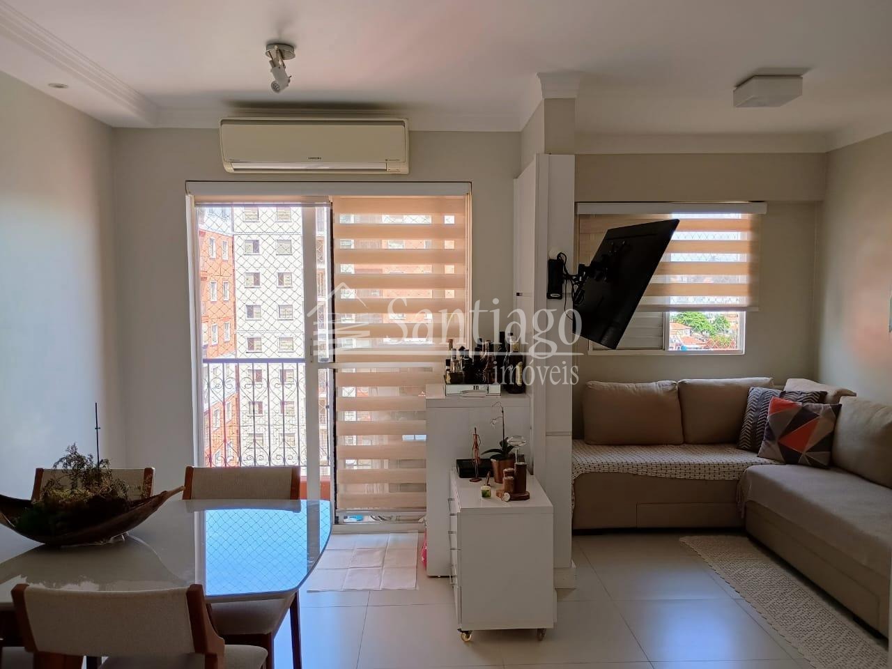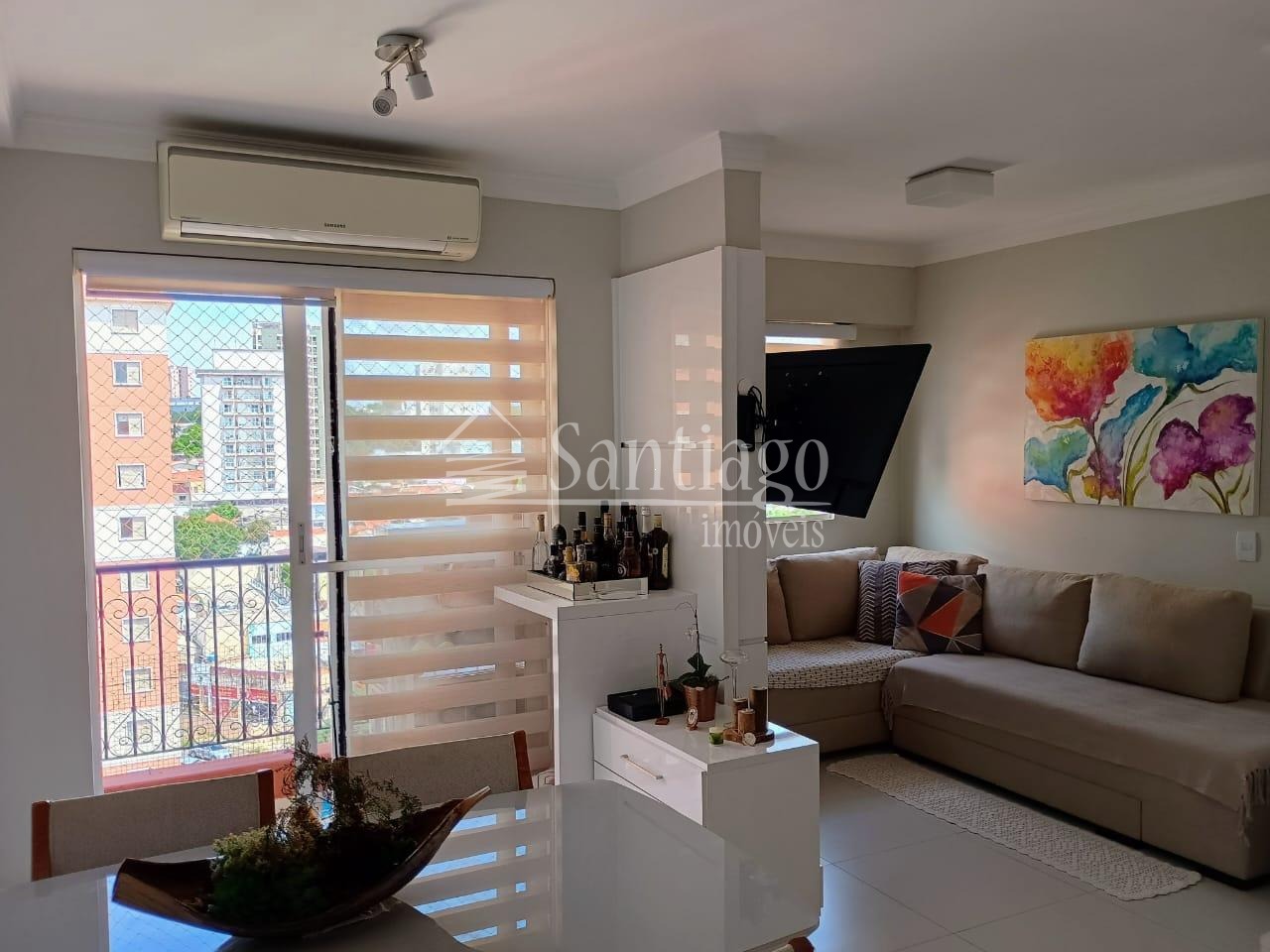 Apartamento com 3 dormitórios rico em armários planejados, 1 dormitório transformado em sala de TV, com 3 ambientes bem aconchegante com Ar-condicionado, sacada com excelente vista, banheiro social, cozinha diferenciada, toda planejada com fogão cooktop, área de serviço, 1 vaga de garagem, Condomínio com portaria 24 horas e lazer, com academia, salão de festas, salão de jogos, churrasqueira, brinquedoteca, playground e mercadinho. No valor do condomínio já está incluso água e gás.
