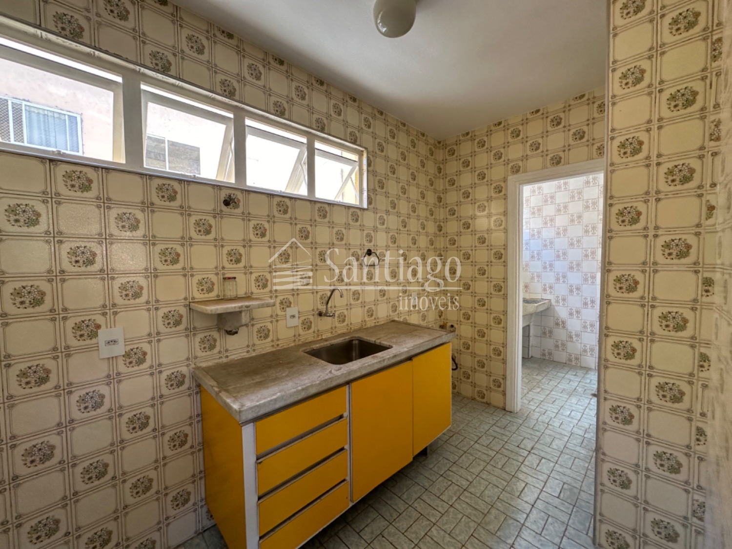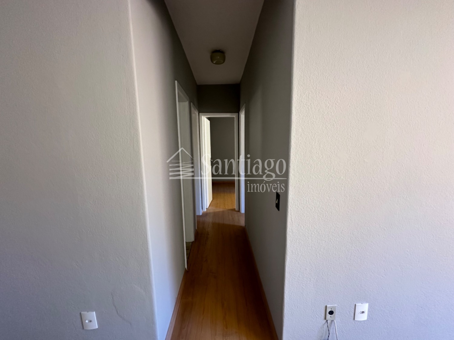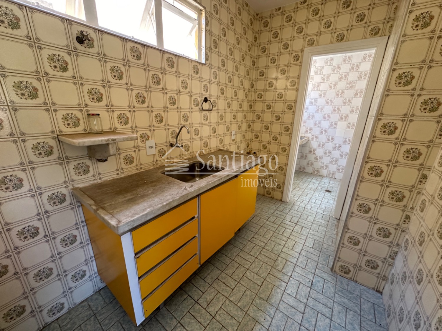 Três dormitórios, sendo um com armários, sala 2 ambientes, cozinha com armários e área de serviço.