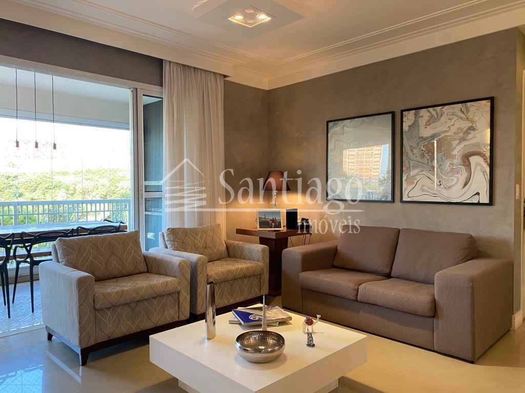 Este imóvel oferece 3 suítes, 5 banheiros, um amplo living para 3 ambientes, sacada gourmet, cozinha independente, 3 vagas de garagem, entrada social e de serviço separadas. Existe a opção de aluguel com mobília e eletrodomésticos inclusos, sendo possível que o proprietário remova os móveis sem impactar no valor do imóvel.