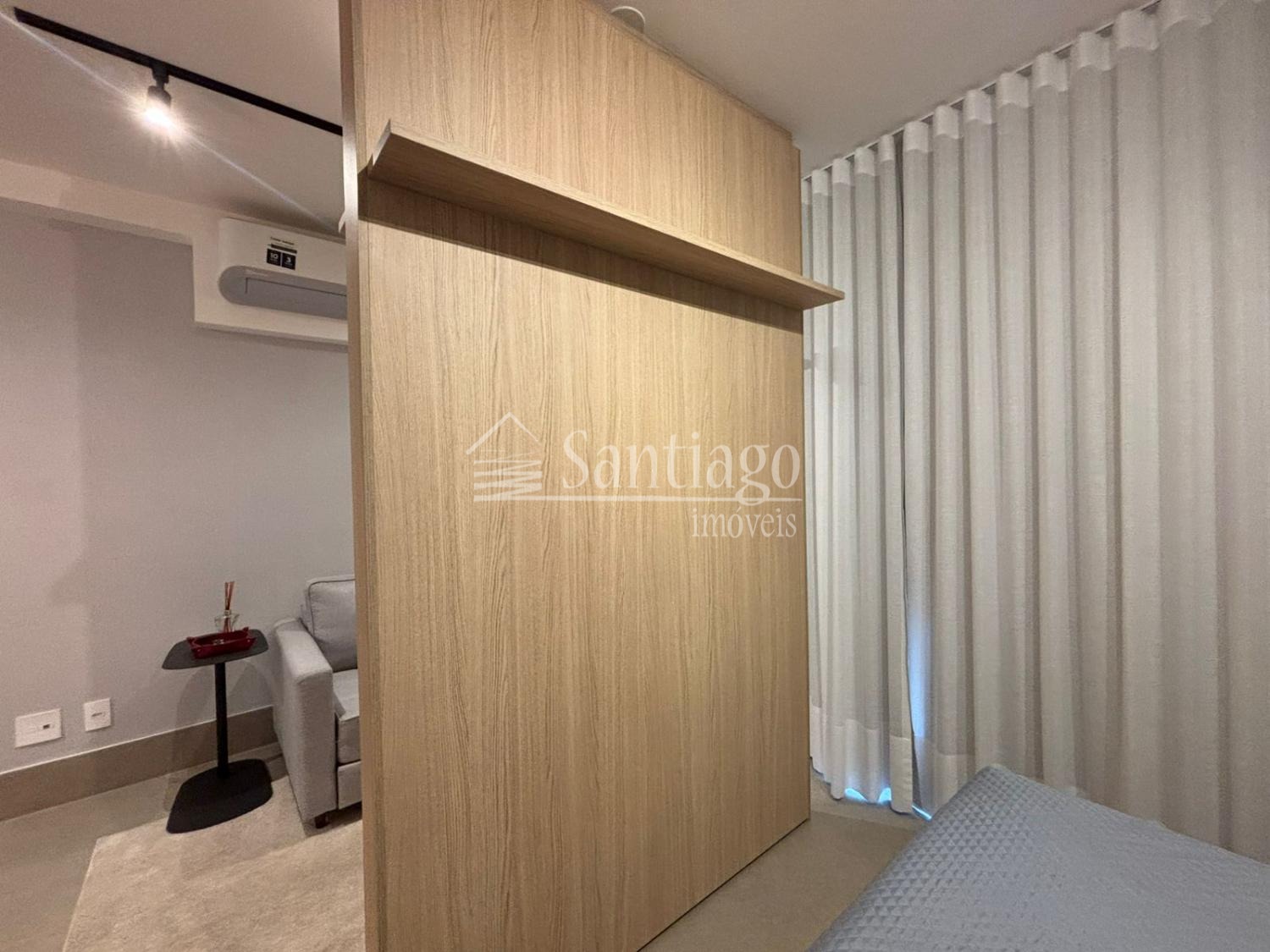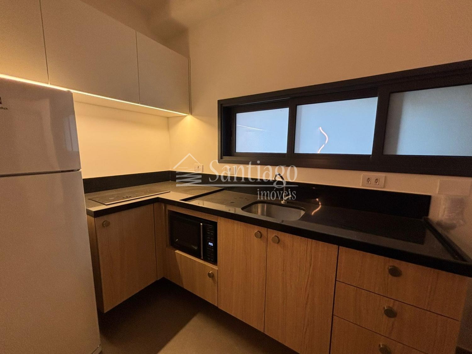 cama + tv 50. Cozinha equipada com cooktop + micro-ondas + geladeira + mesa 2 lugares. Varanda com vista livre sol da manhã. Quarto com cama baú + armário embutido + roupeiro. Banheiro com