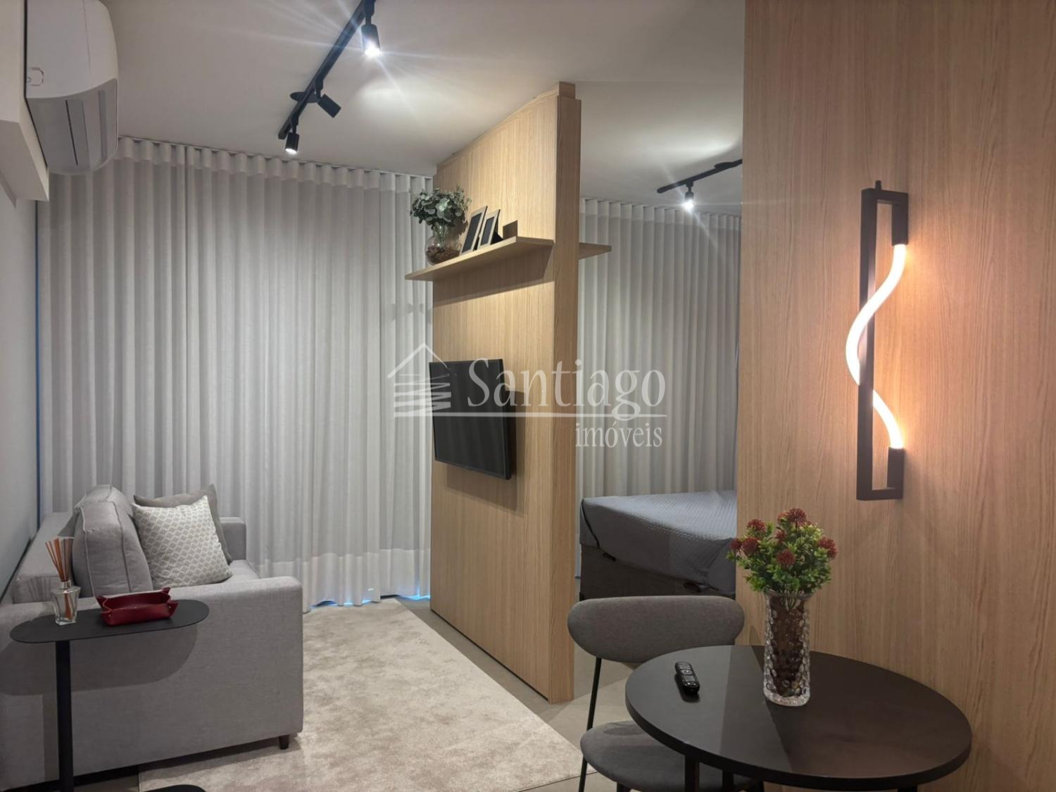 Projeto: Moderno apto 1 quarto todo decorado e mobiliado design. Sala com sofá