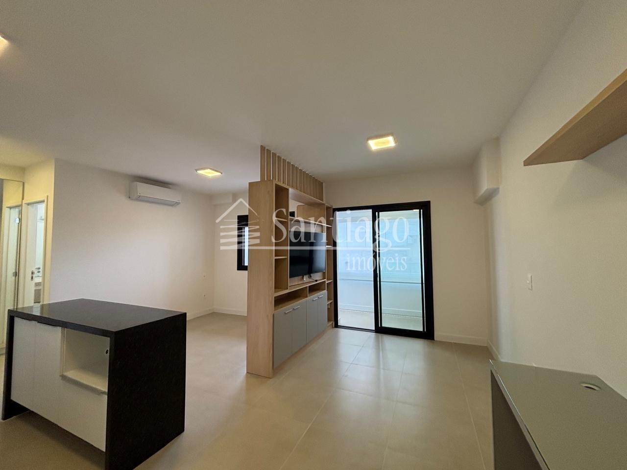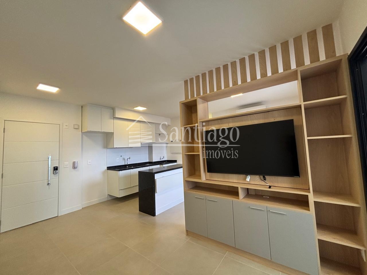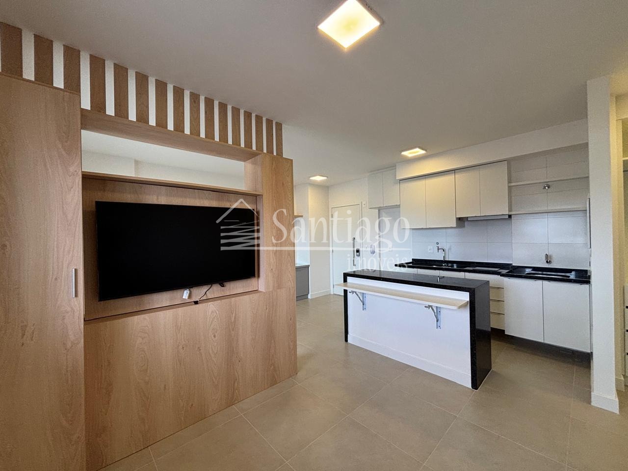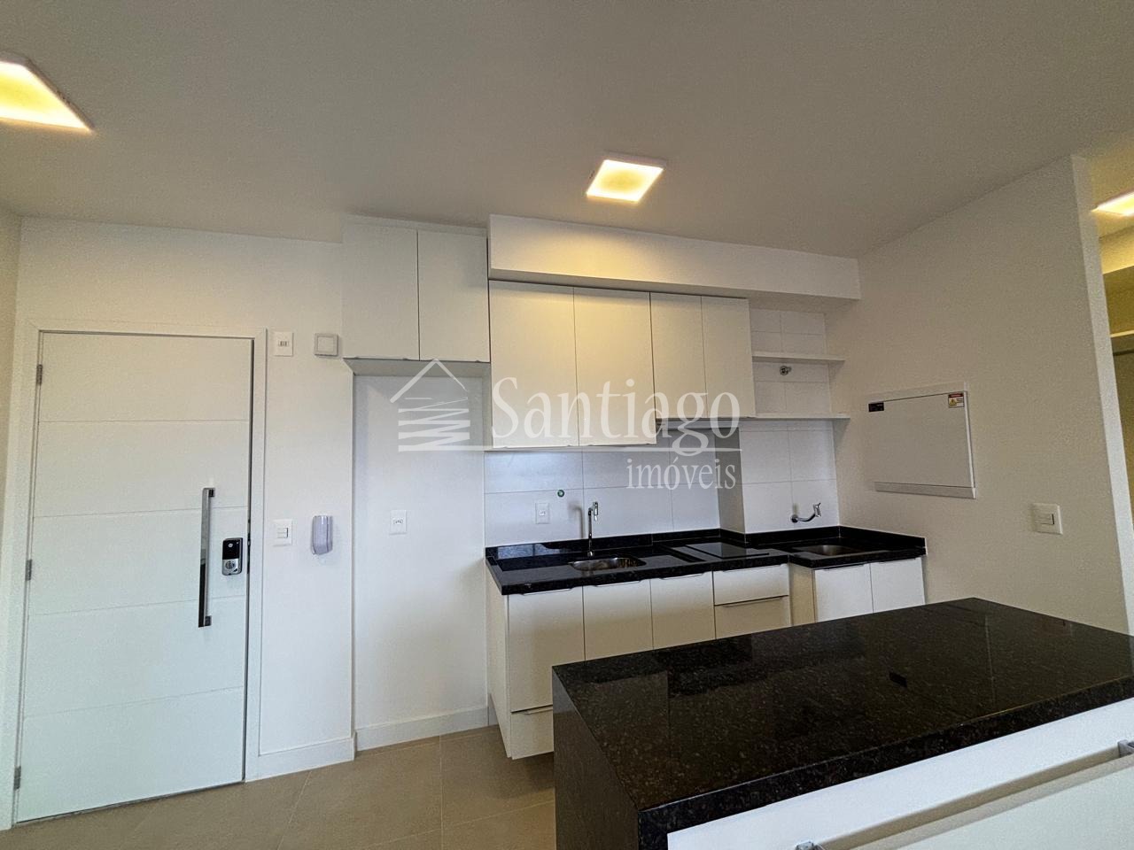 Apartamento para alugar no condomínio Sirius Patriani com 46m², moveis planejados, com closet, cozinha americana, sala 2 ambientes, varanda e uma vaga de garagem. Agende sua visita com à Santiago Imóveis.