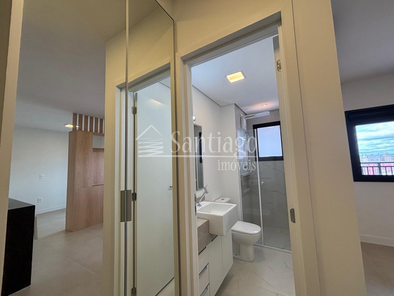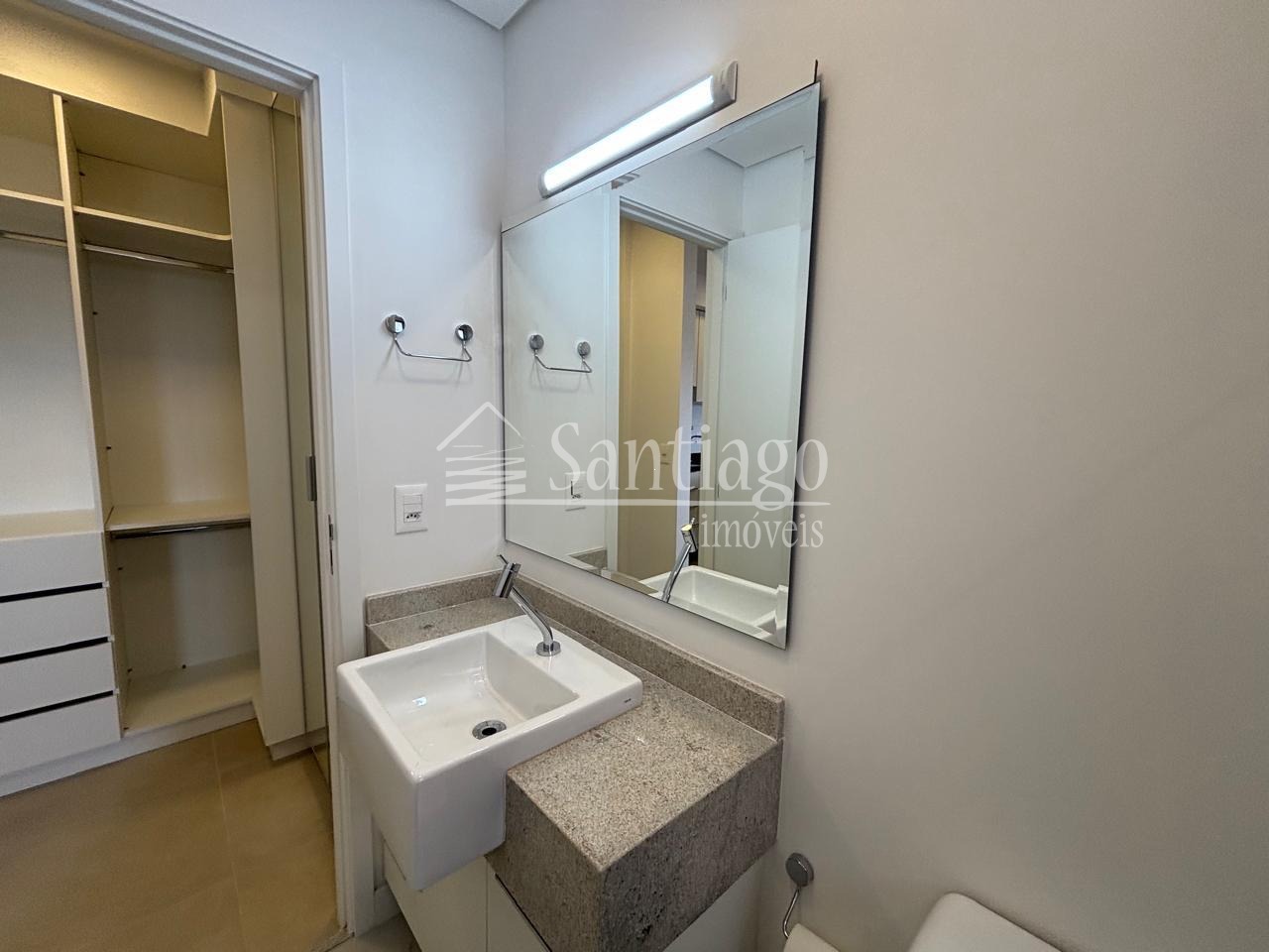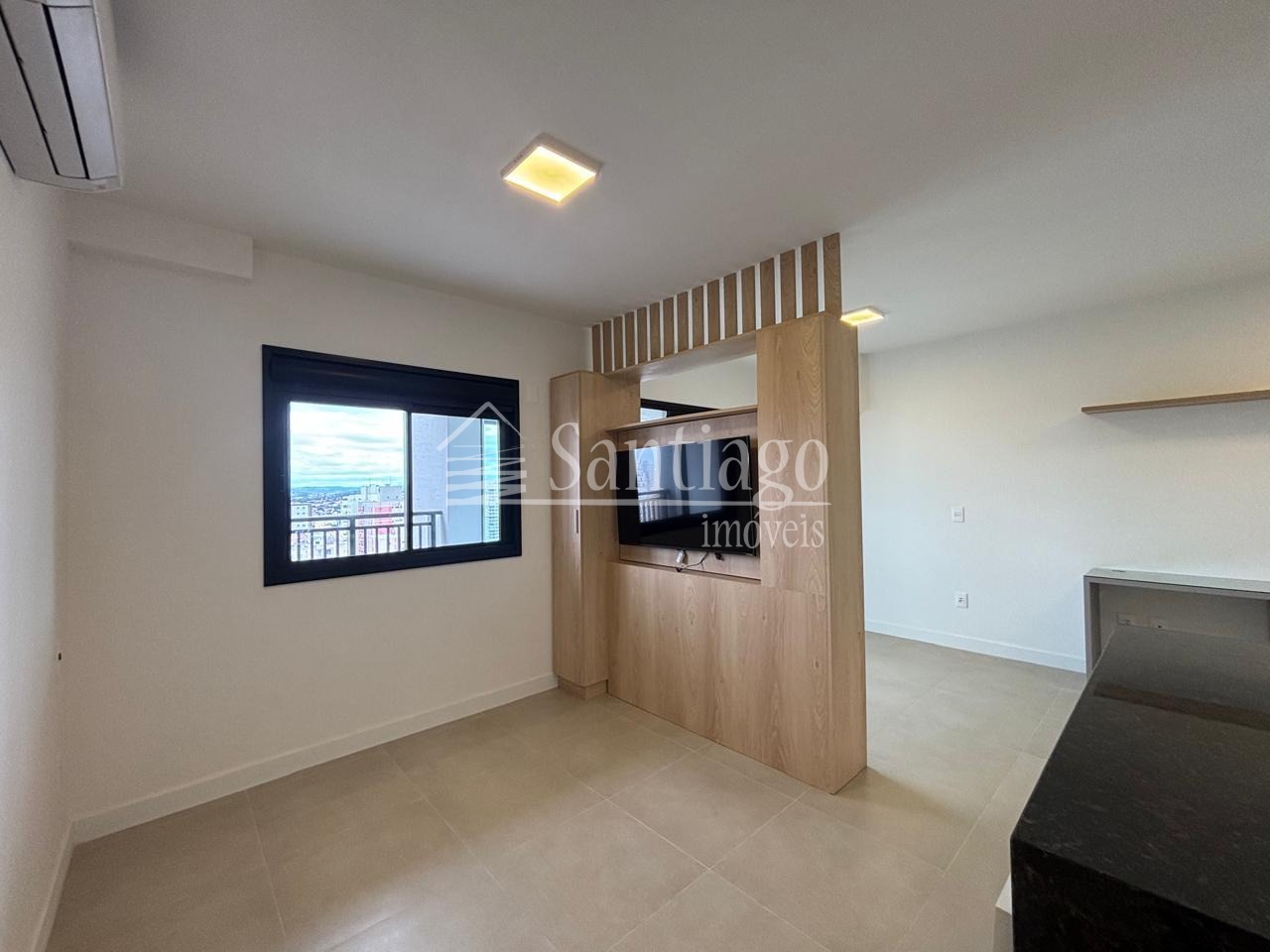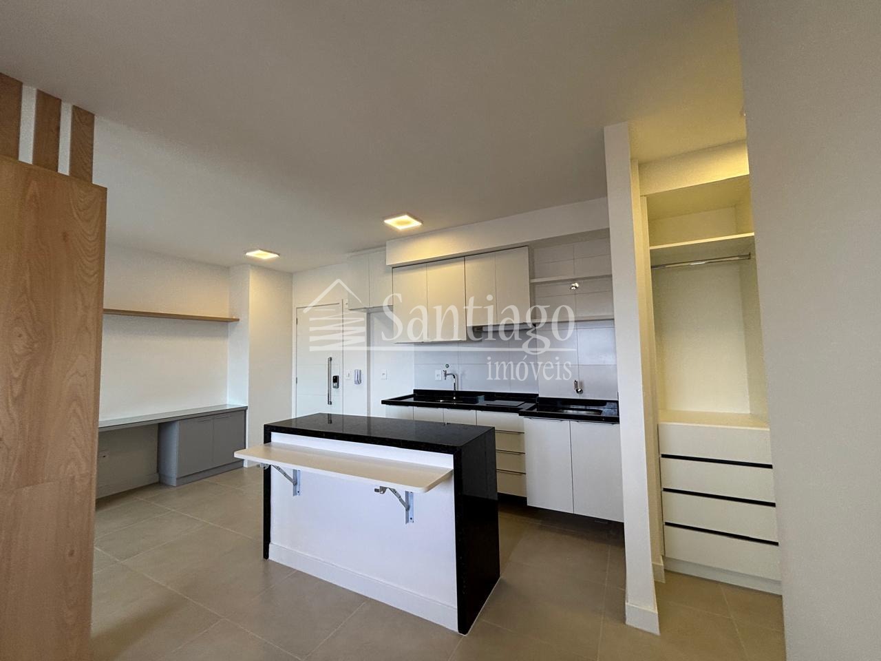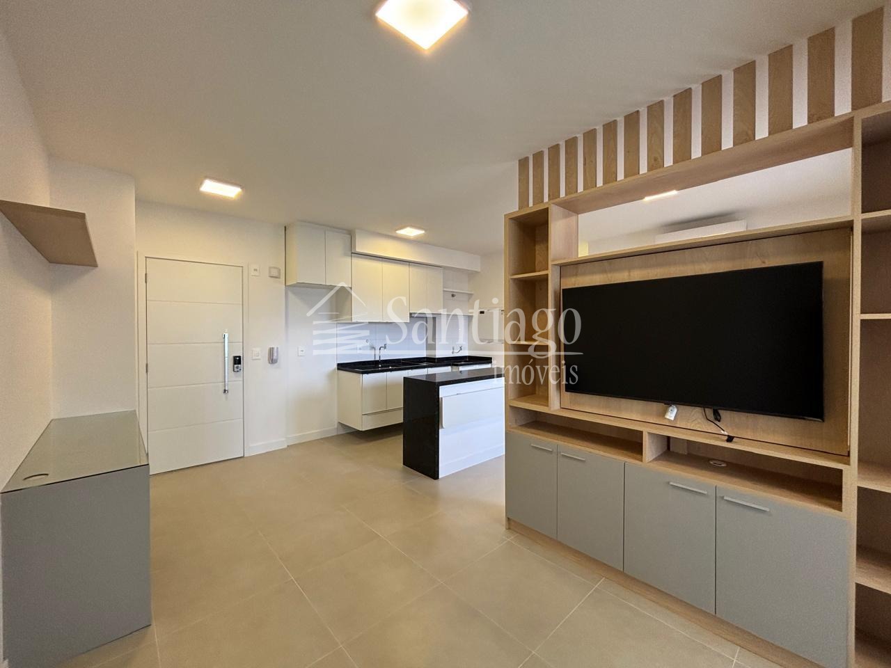 Apartamento para alugar no condomínio Sirius Patriani com 46m², moveis planejados, com closet, cozinha americana, sala 2 ambientes, varanda e uma vaga de garagem. Agende sua visita com à Santiago Imóveis.