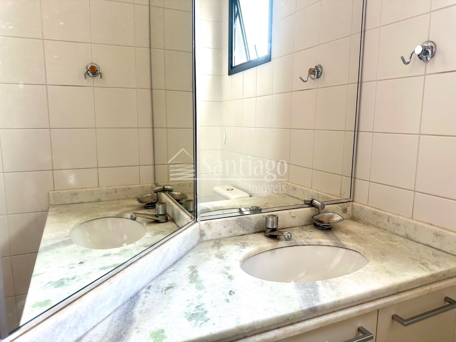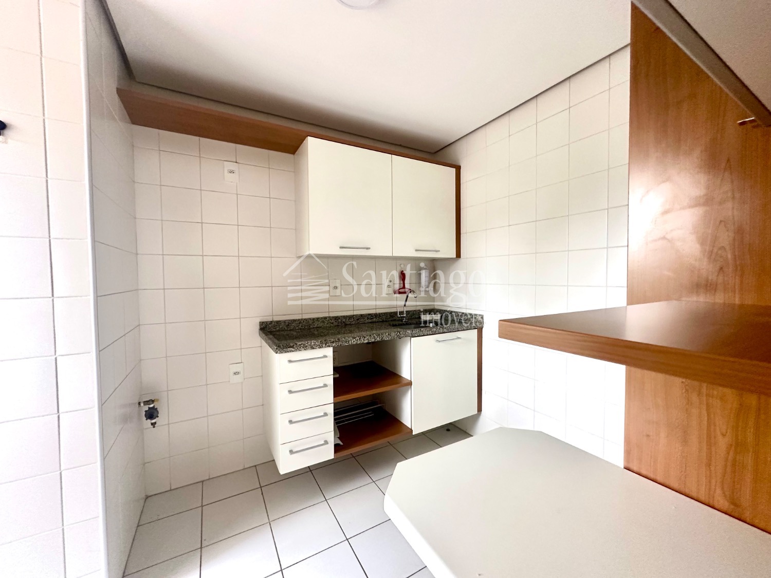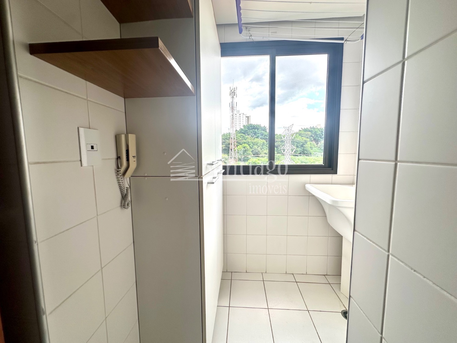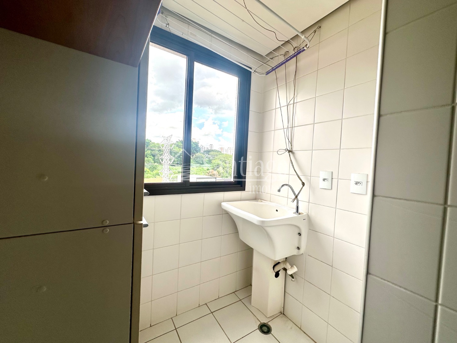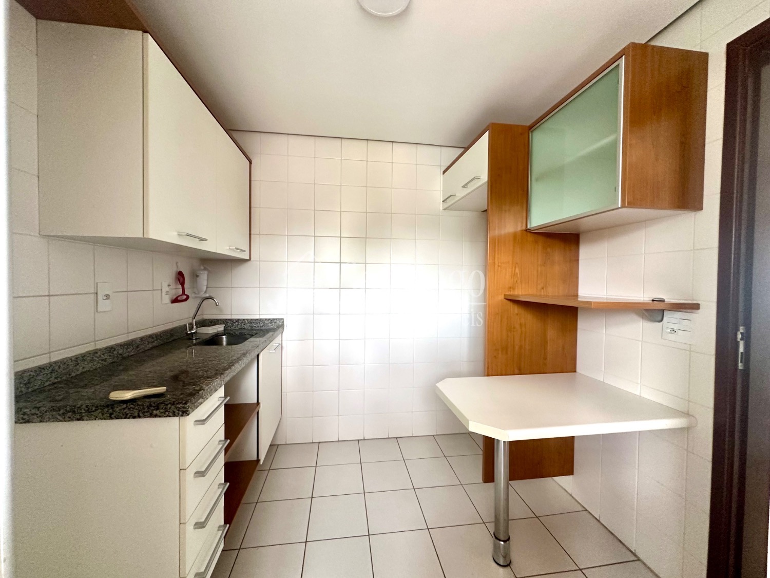 1 suíte, 1 lavabo, 1 sala com 2 ambientes, varanda, área de serviço e cozinha.
