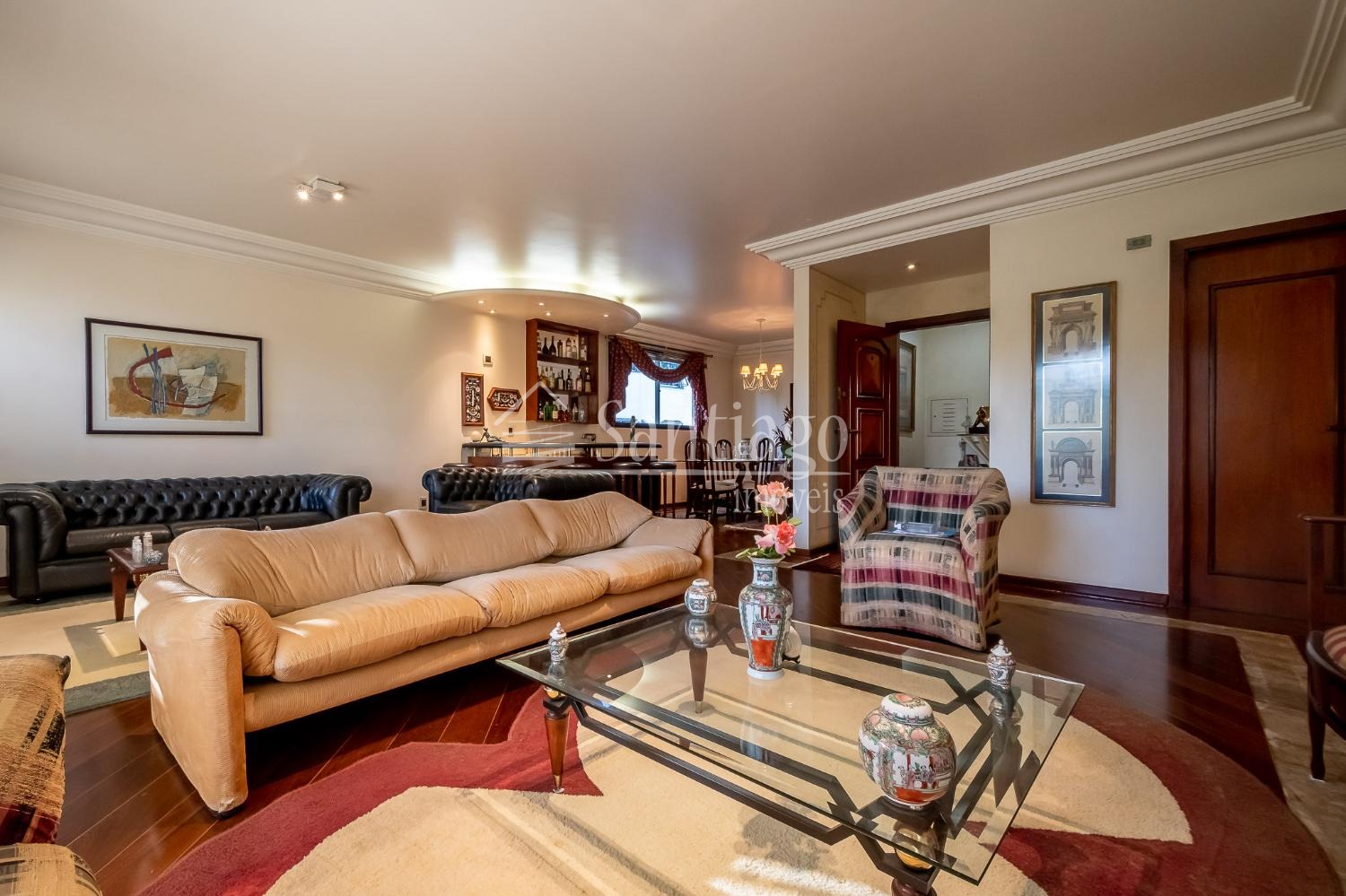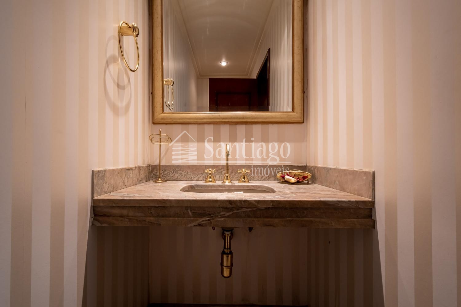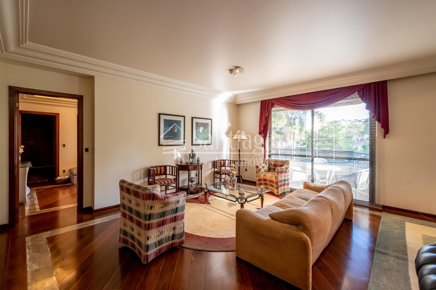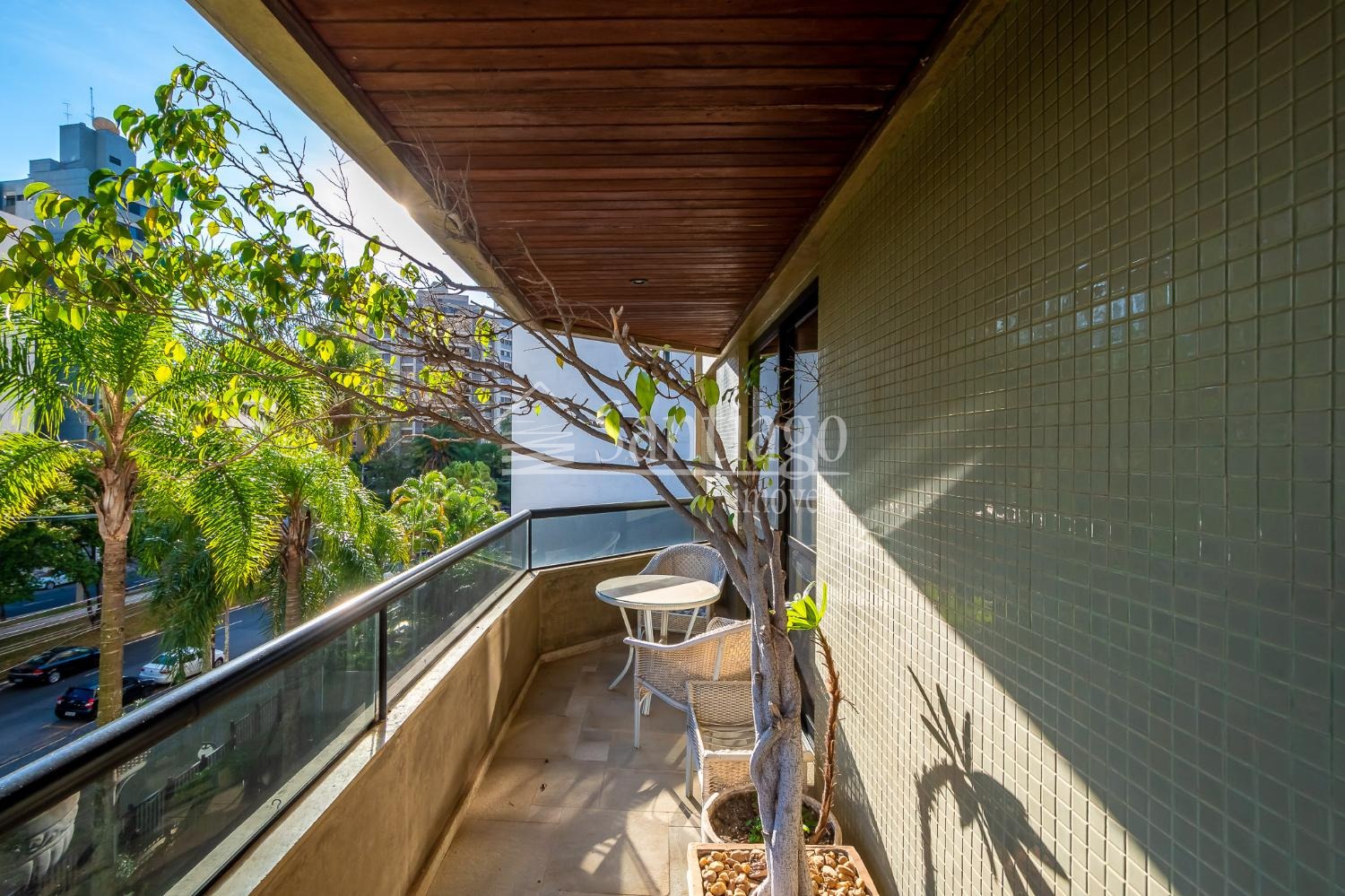 São 4 espaçosos dormitórios sendo 2 suítes (1 master), dormitórios completos com ótimos armários, banheiros social e da suíte com blindex, armário roupeiro no hall de distribuição, sala de tv, lavabo, aconchegante living para 3 distintos ambientes com bar, integrado a uma convidativa varanda, vista arborizada, cozinha ricamente planejada com copa e despensa, área de serviço com dependência completa de empregada.