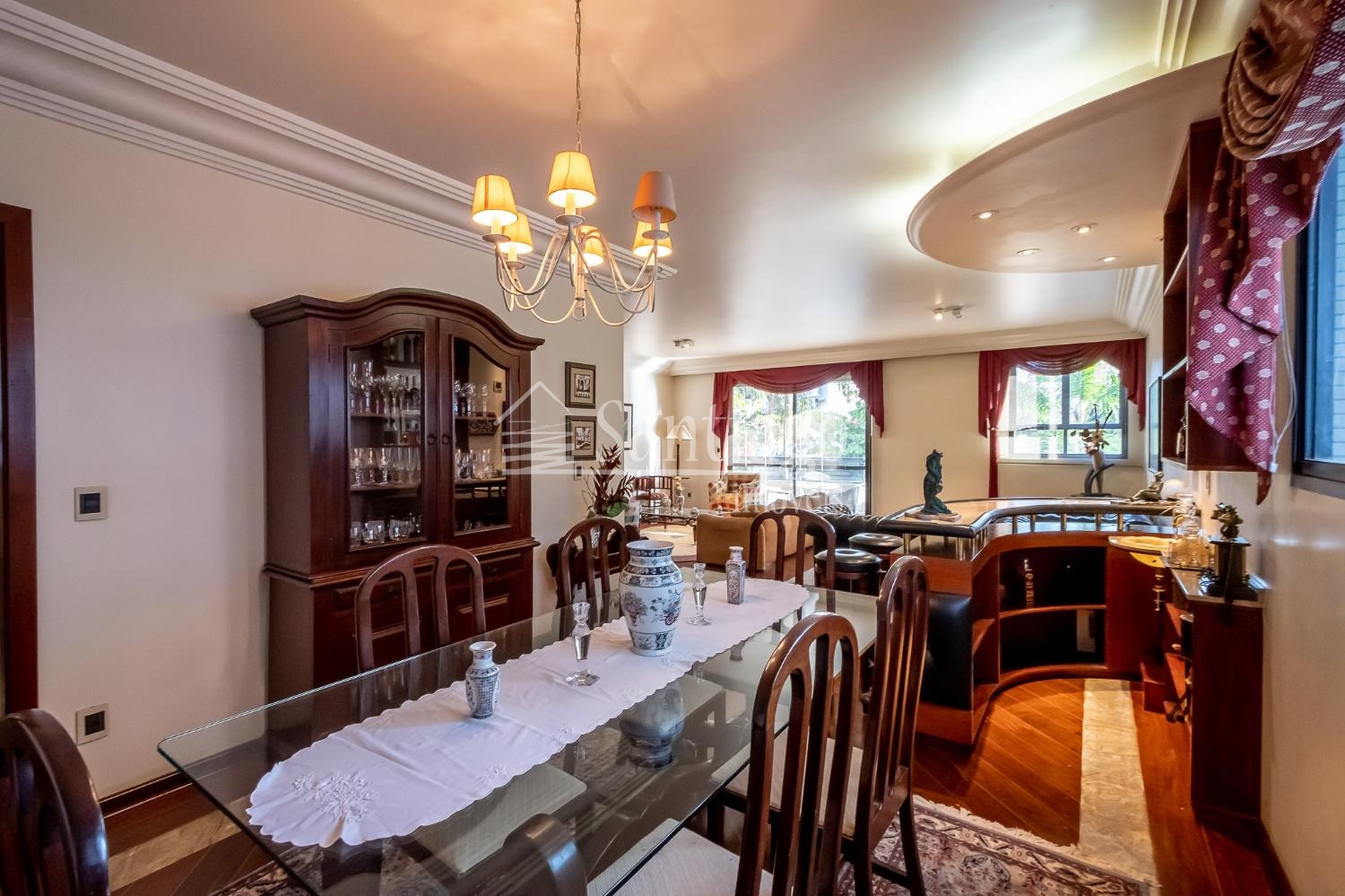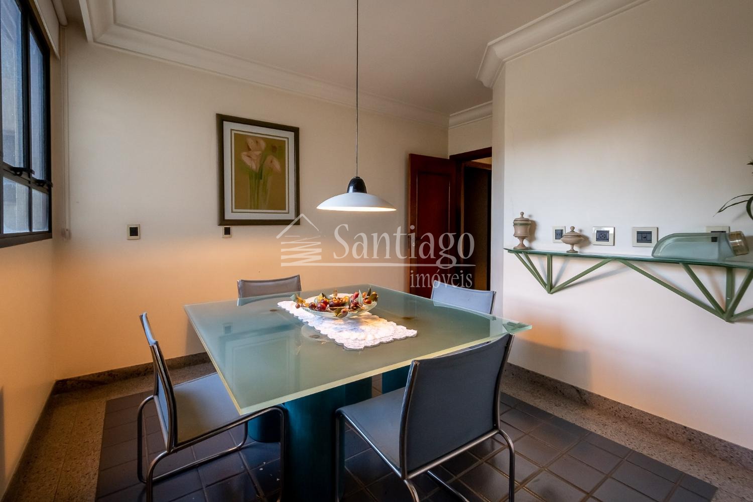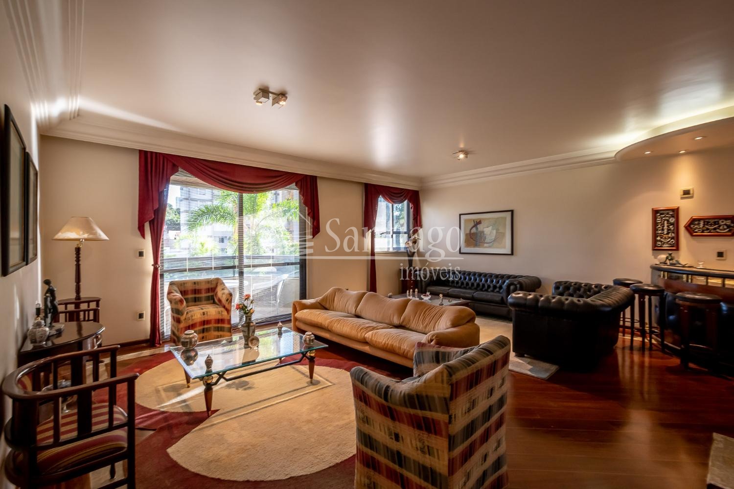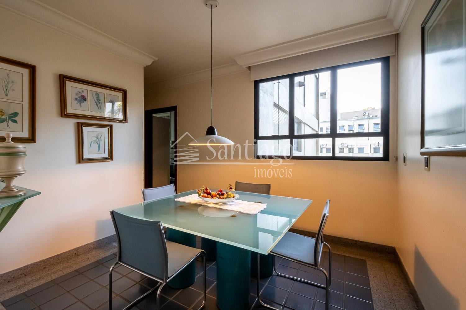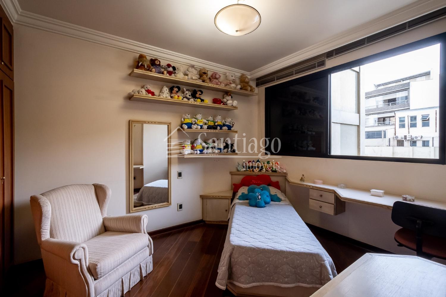 São 4 espaçosos dormitórios sendo 2 suítes (1 master), dormitórios completos com ótimos armários, banheiros social e da suíte com blindex, armário roupeiro no hall de distribuição, sala de tv, lavabo, aconchegante living para 3 distintos ambientes com bar, integrado a uma convidativa varanda, vista arborizada, cozinha ricamente planejada com copa e despensa, área de serviço com dependência completa de empregada.
