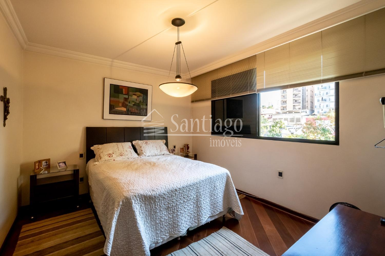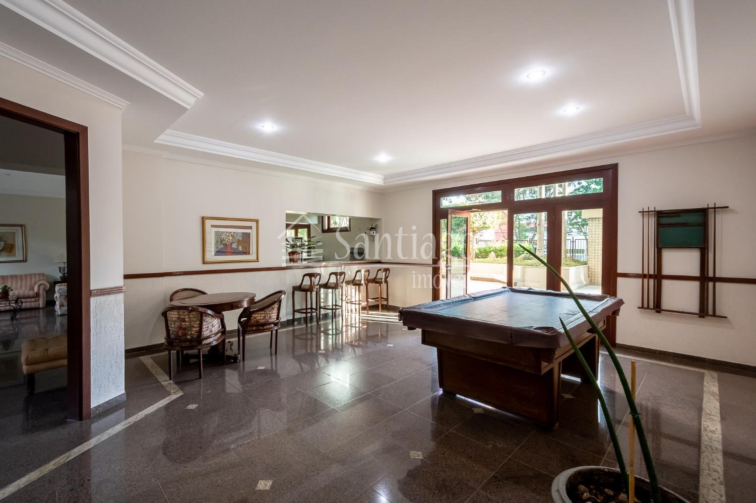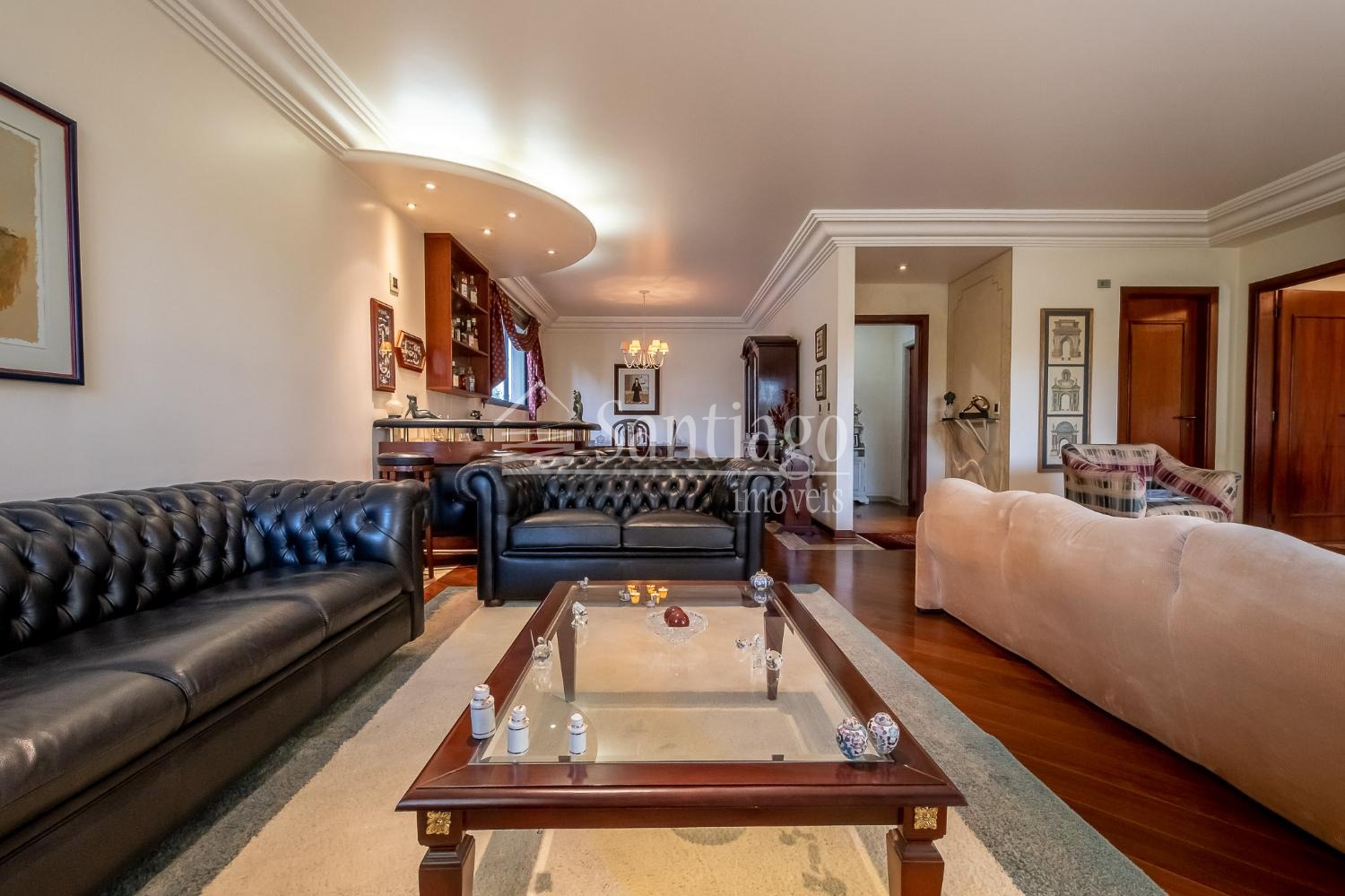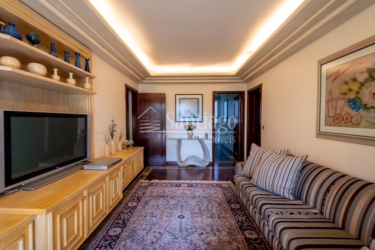 São 4 espaçosos dormitórios sendo 2 suítes (1 master), dormitórios completos com ótimos armários, banheiros social e da suíte com blindex, armário roupeiro no hall de distribuição, sala de tv, lavabo, aconchegante living para 3 distintos ambientes com bar, integrado a uma convidativa varanda, vista arborizada, cozinha ricamente planejada com copa e despensa, área de serviço com dependência completa de empregada.