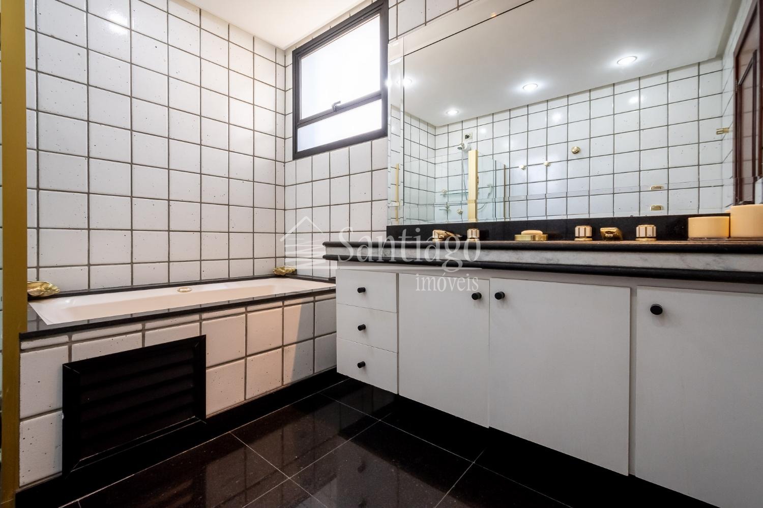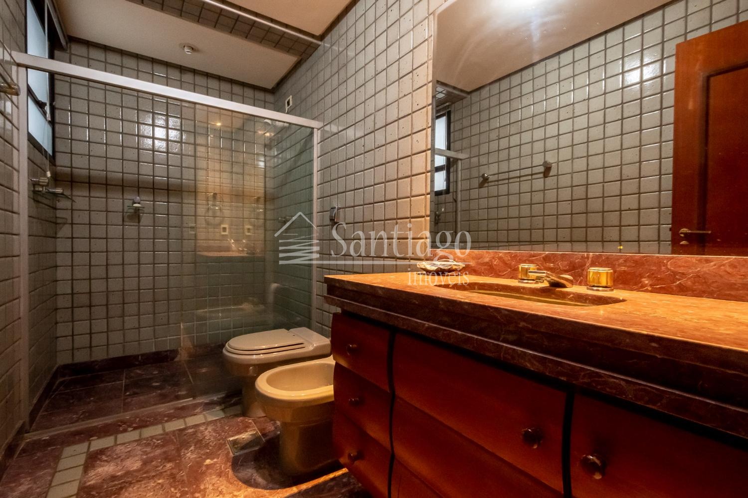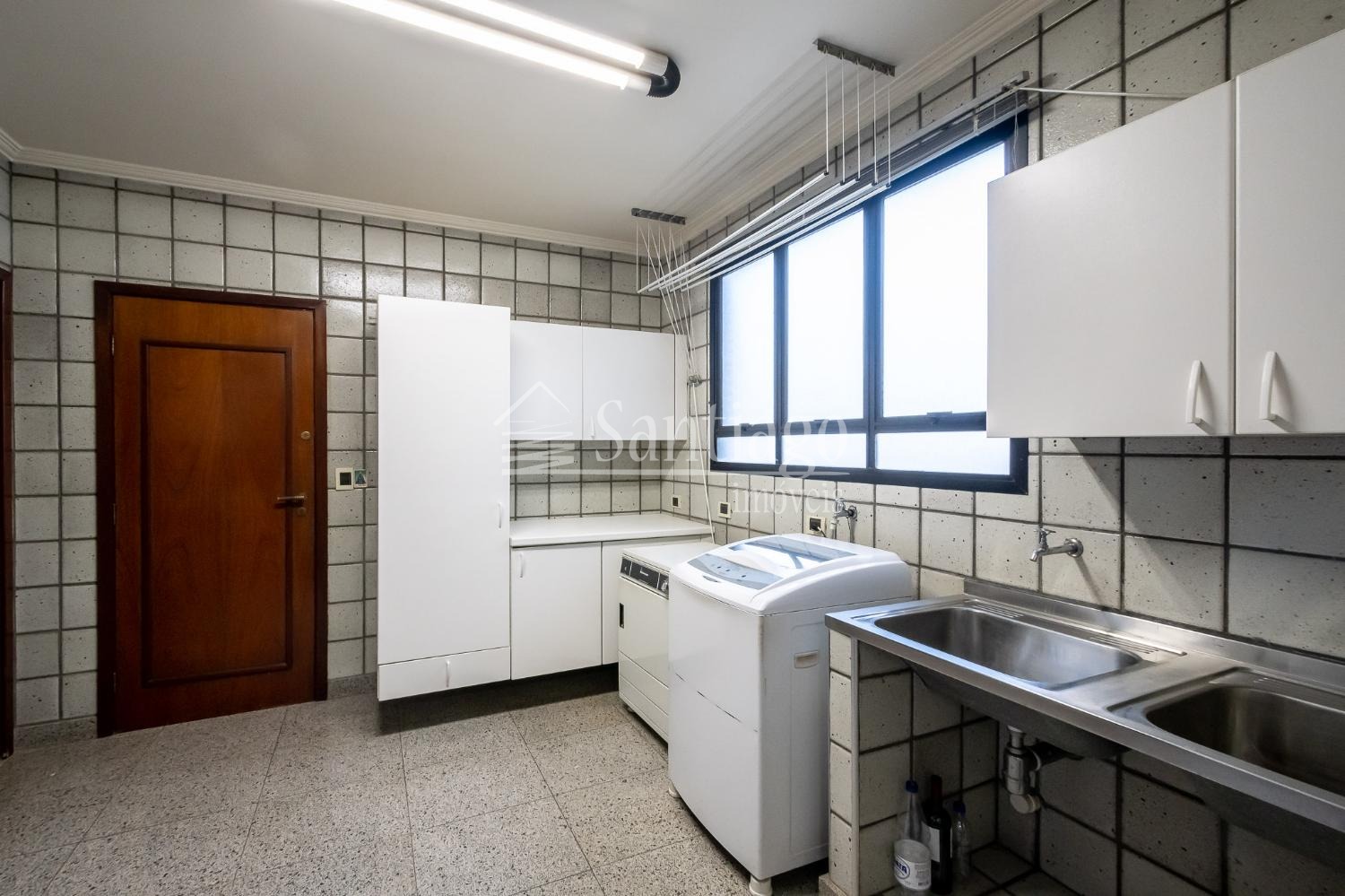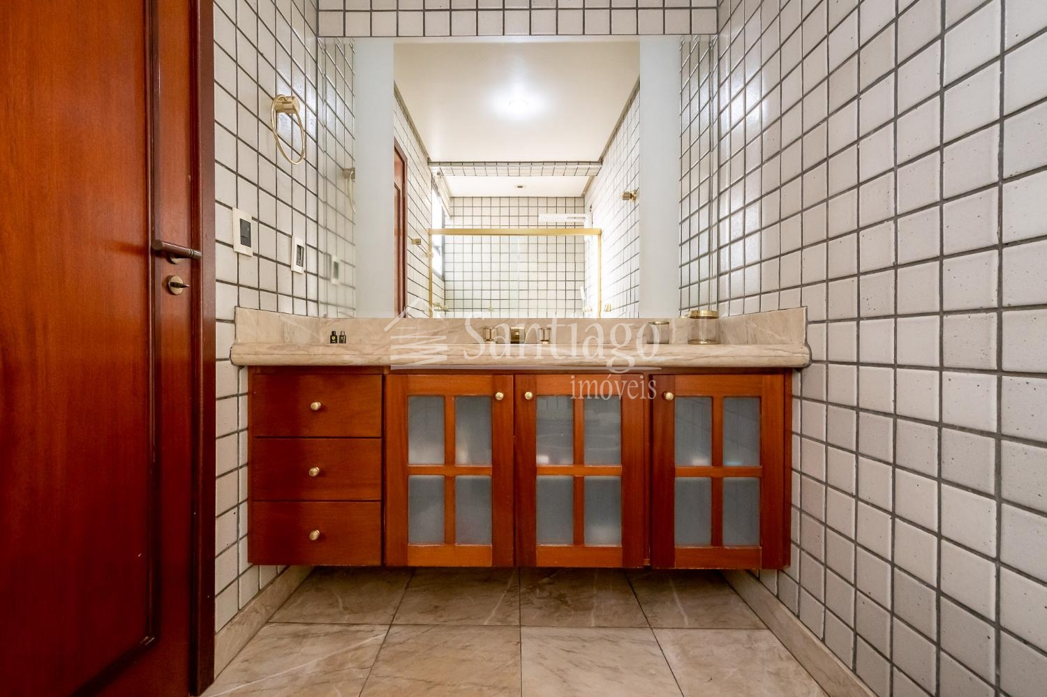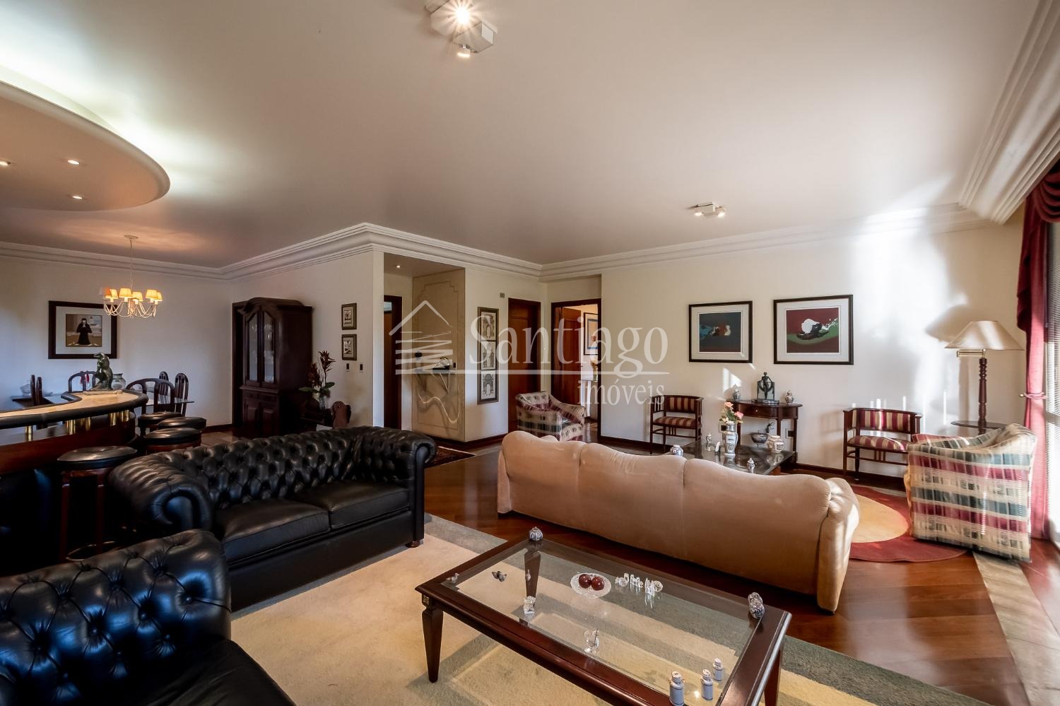 São 4 espaçosos dormitórios sendo 2 suítes (1 master), dormitórios completos com ótimos armários, banheiros social e da suíte com blindex, armário roupeiro no hall de distribuição, sala de tv, lavabo, aconchegante living para 3 distintos ambientes com bar, integrado a uma convidativa varanda, vista arborizada, cozinha ricamente planejada com copa e despensa, área de serviço com dependência completa de empregada.