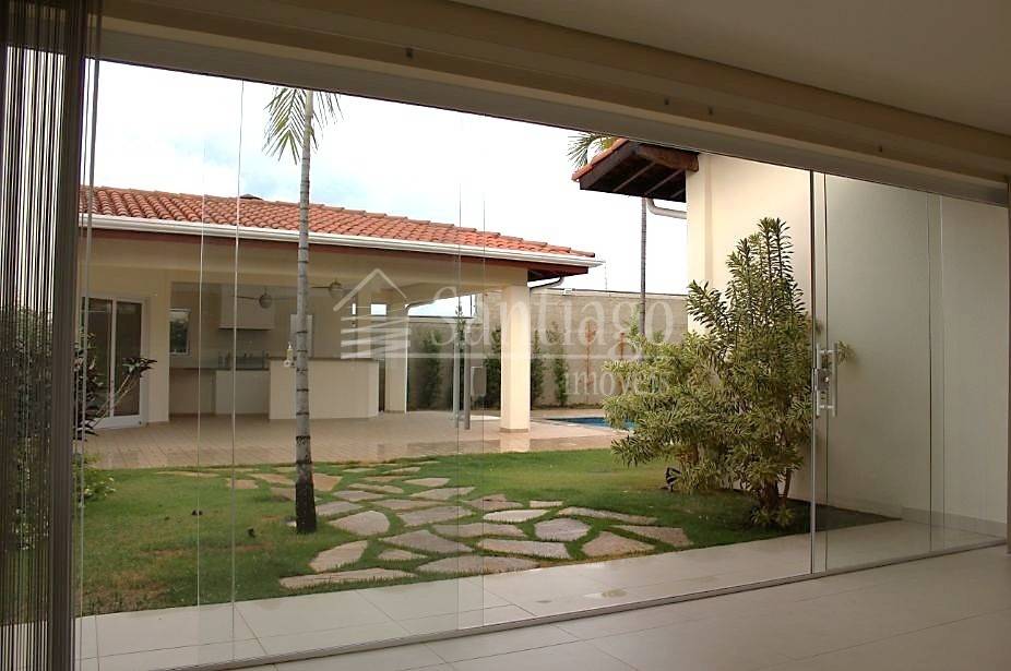 Casa térrea de alto padrão, com ambientes amplos e acabamento refinado, projetada com iluminação e paisagismo exclusivos.
