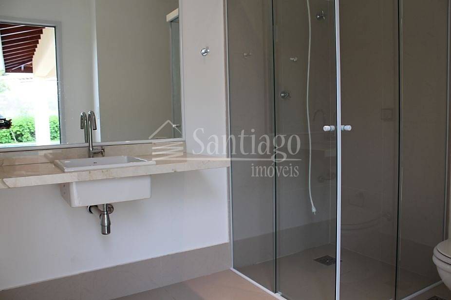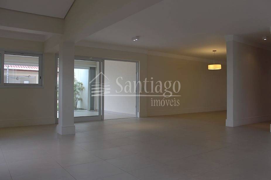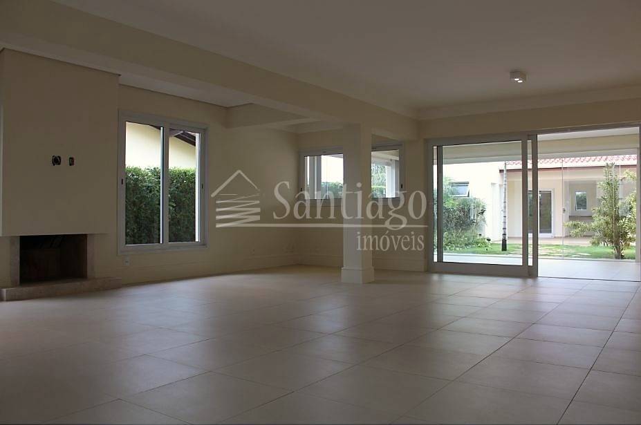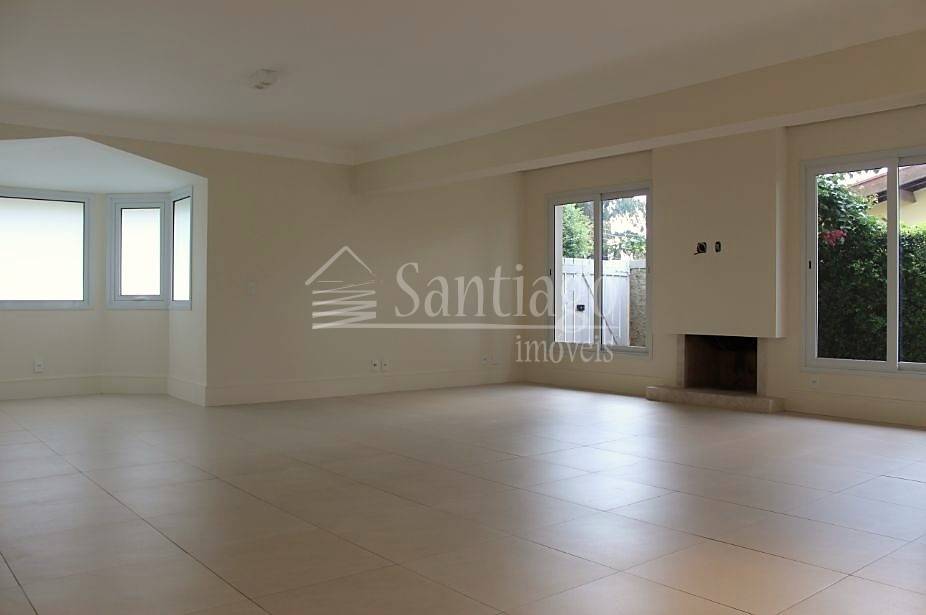O living é aconchegante, com espaço para quatro ambientes, lareira e lavabo. O imóvel dispõe de sofisticado espaço gourmet com churrasqueira, piscina e banheiros de apoio.