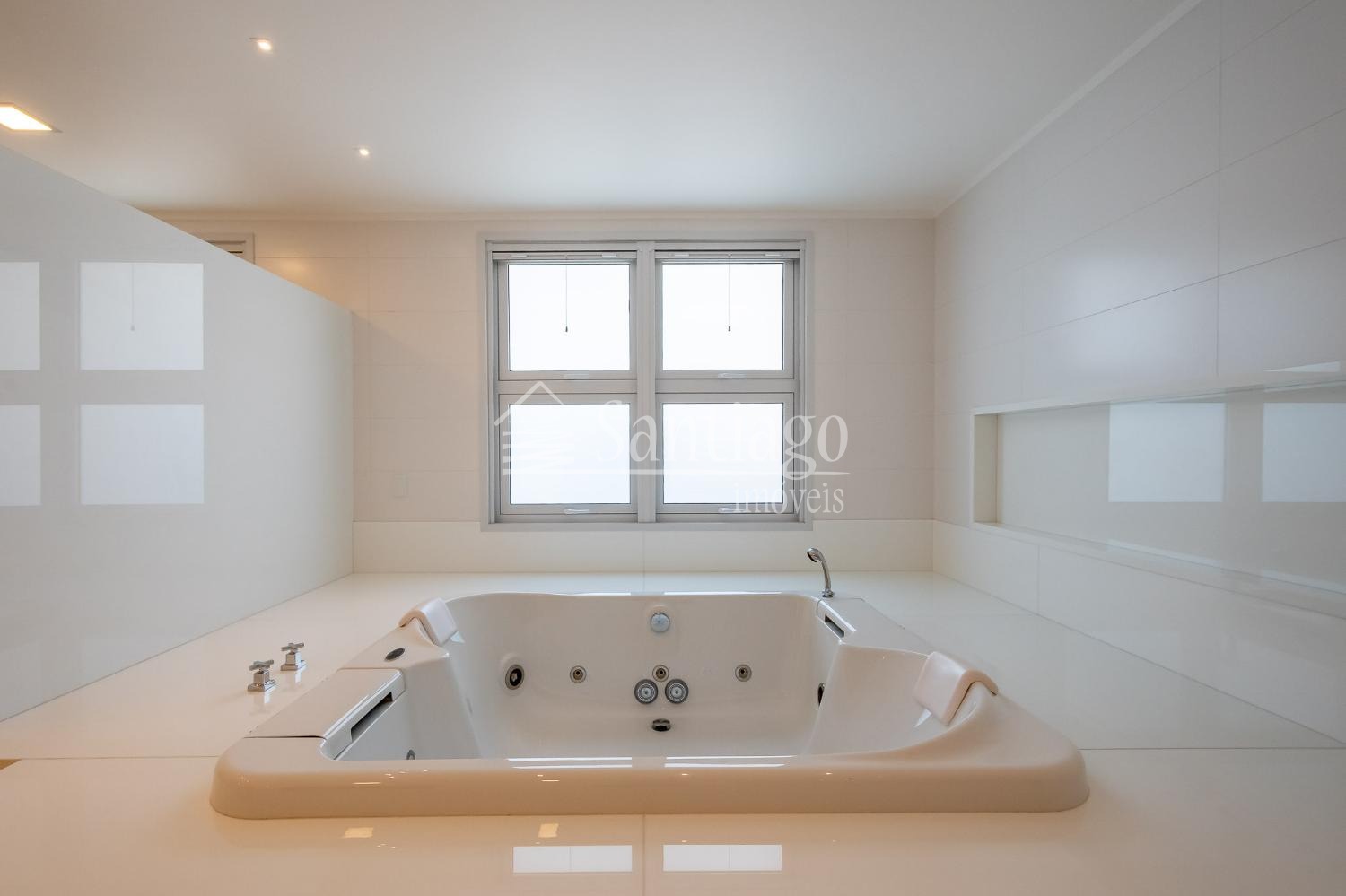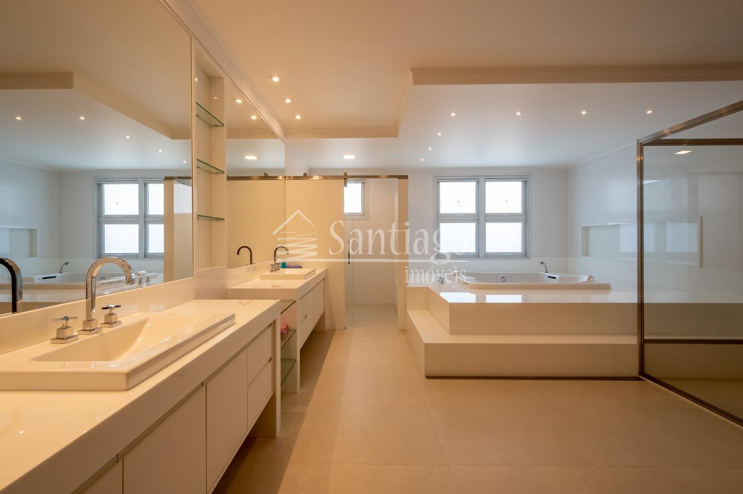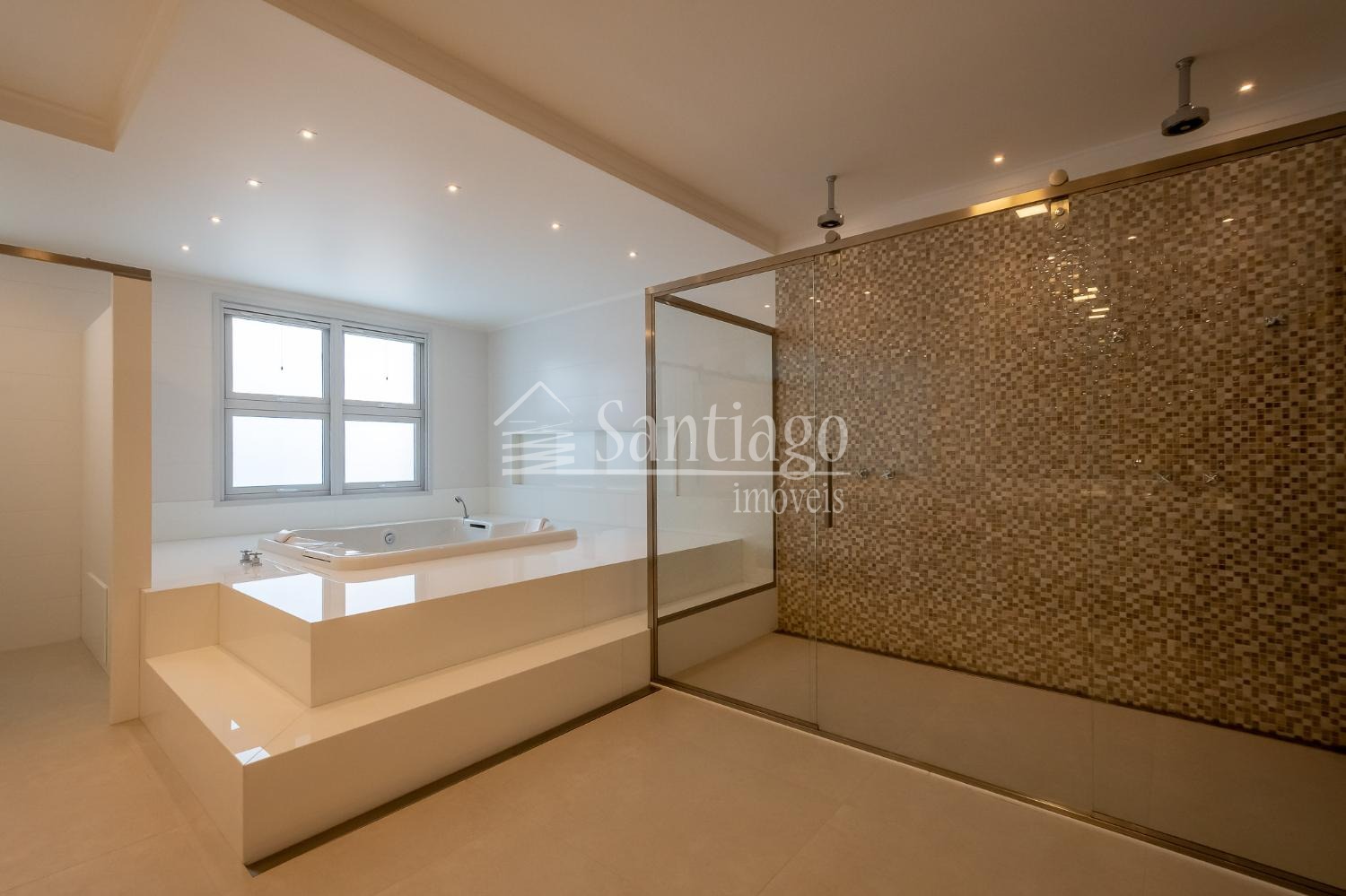 A área intima com 5 suítes, sendo 1 Master com bancadas e duchas duplas, hidromassagem, Closet Sr. e Sra. e escritório privativo, todas as suítes contemplam uma vista esplêndida pelas varandas.