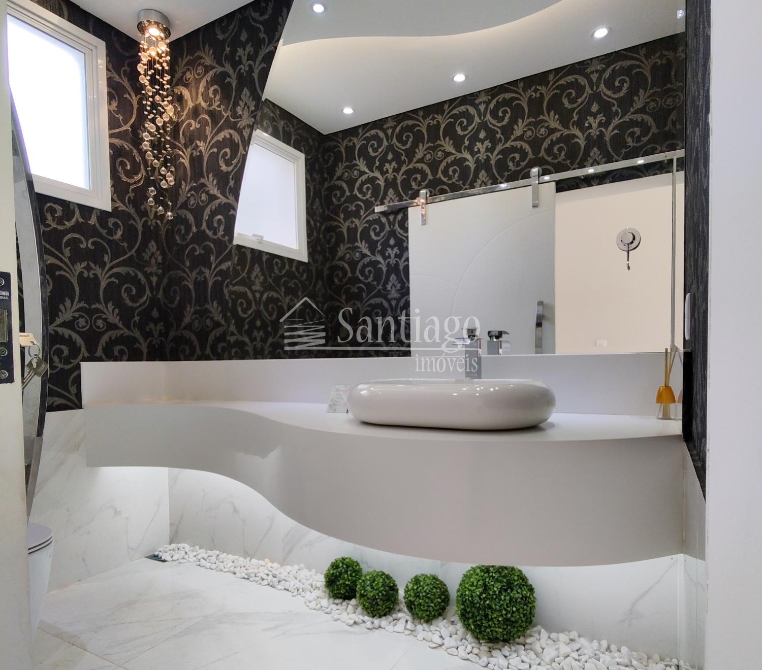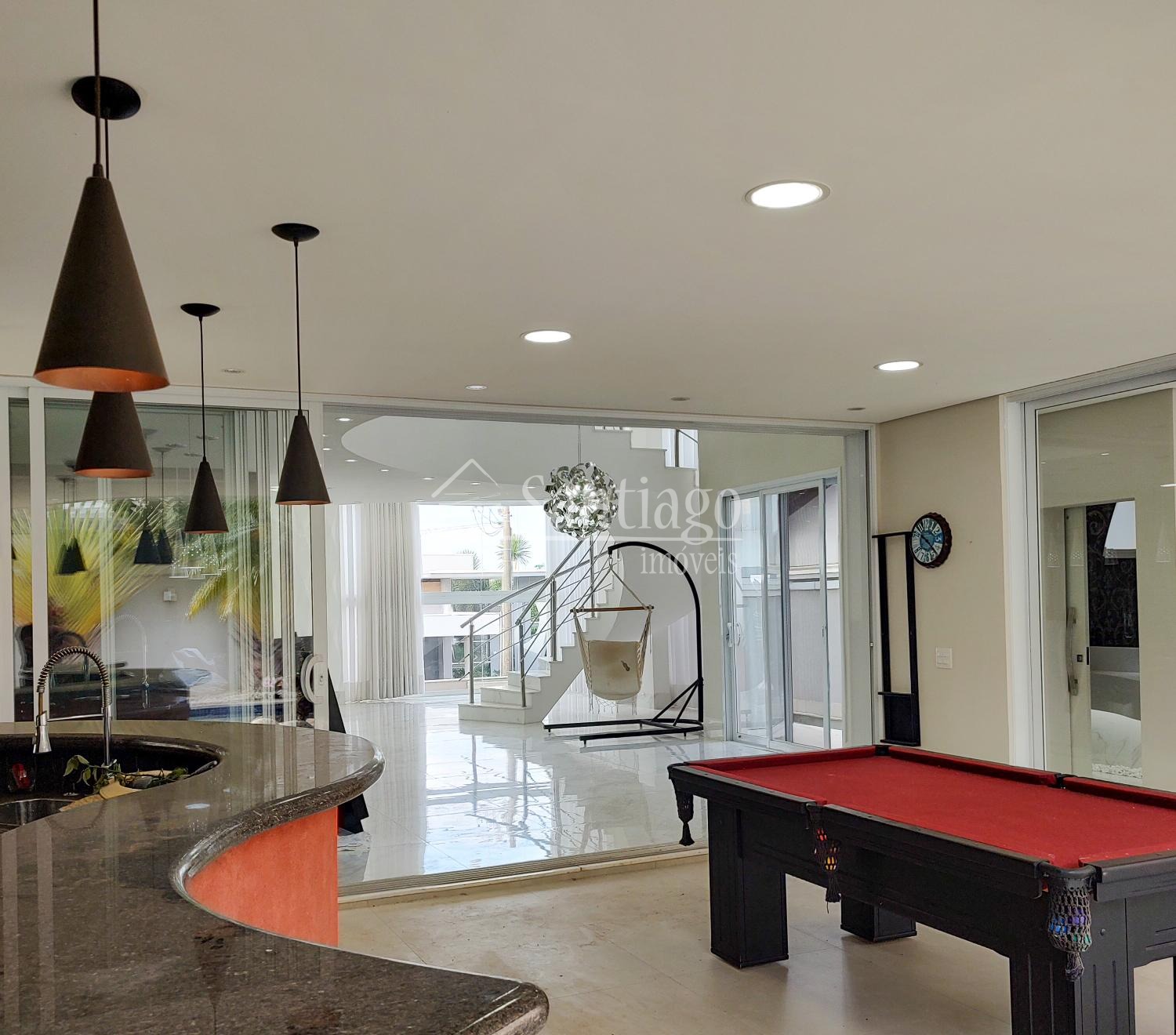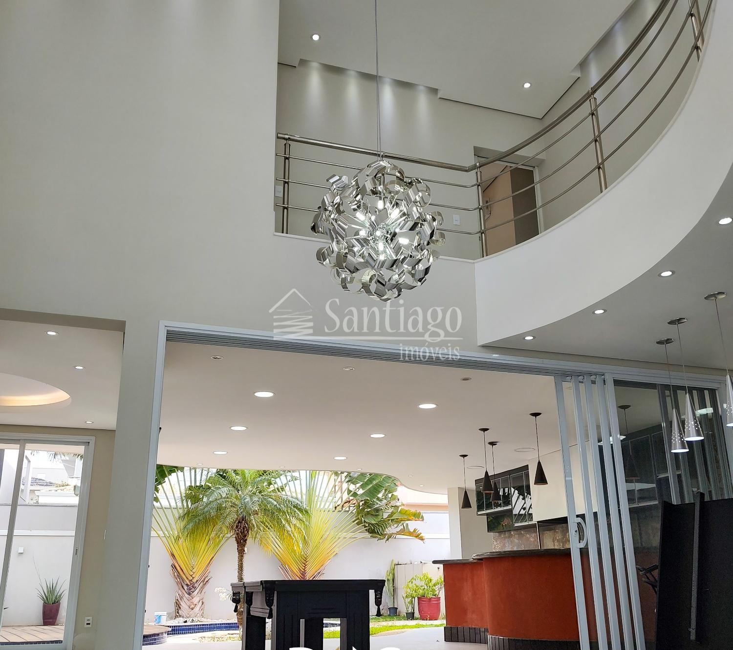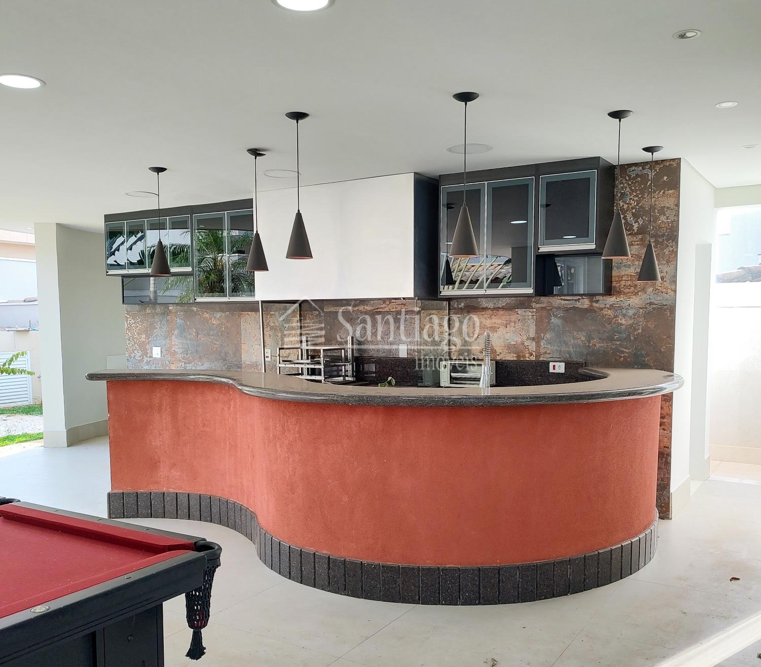 Casa desenhada pelo arquiteto Aquilles com projeto distribuído salas integradas: visita, jantar, cozinha e área gourmet, lavabo, despensa, lavanderia, espaço gourmet completa com banheiro feminino e masculino, 1 sala de tv no mezanino, 3 dormitórios sendo 3 suíte com 1 máster.