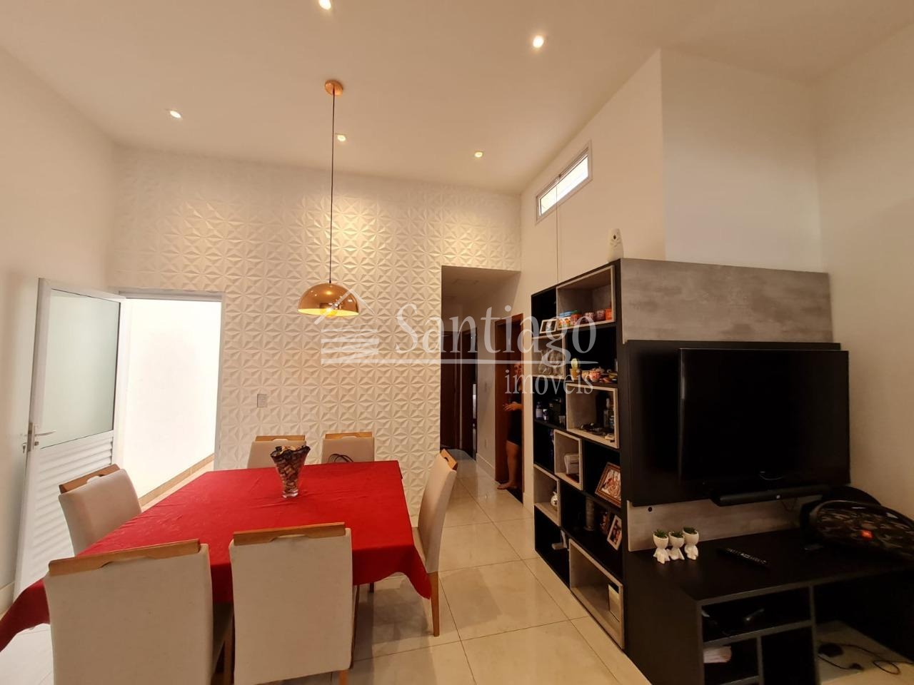Lindo lustre na sala de jantar;