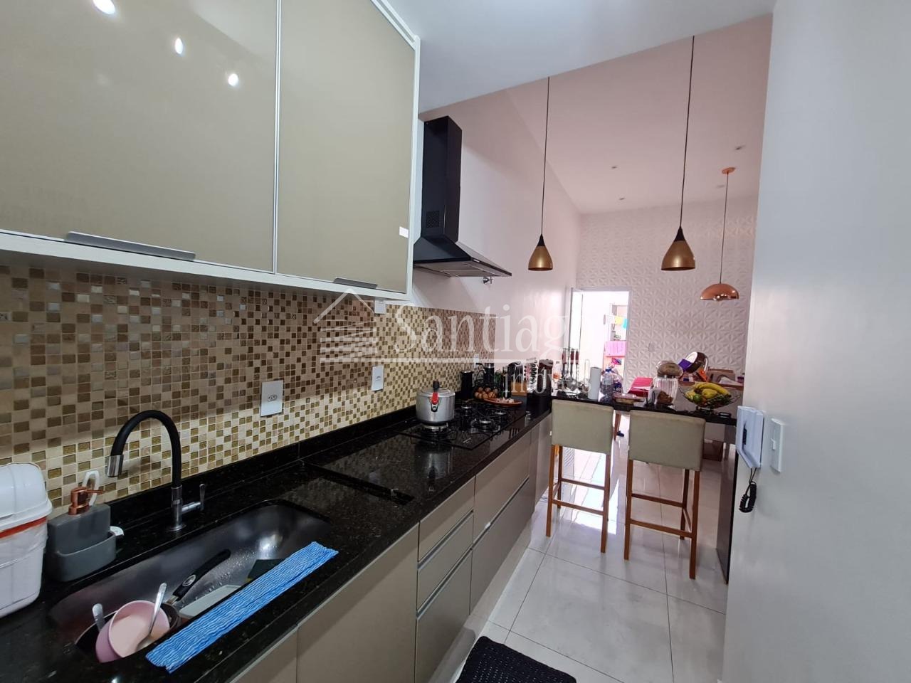 Cozinha interligada com a sala de jantar e sala de tv;