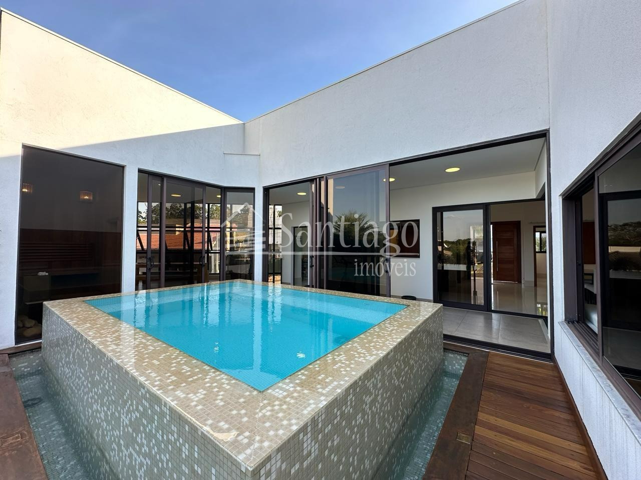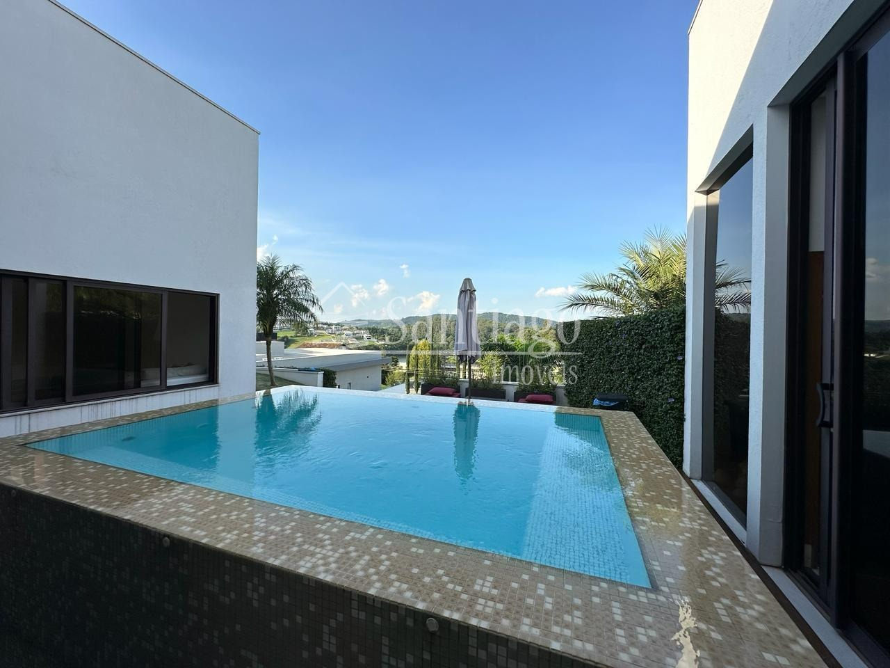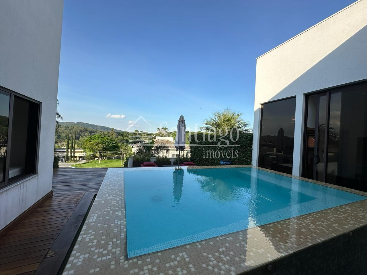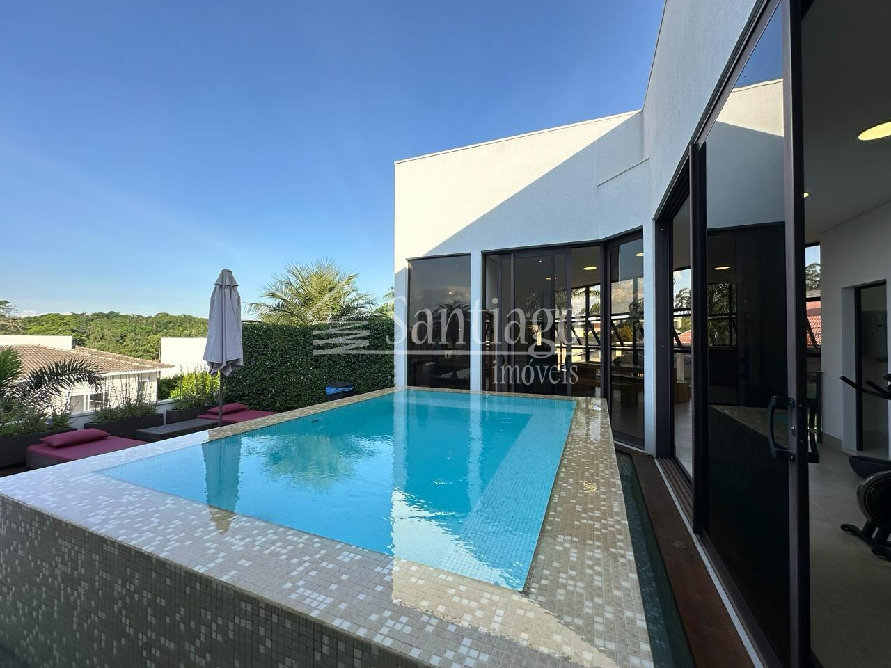 Além disso, o imóvel possui 3 suítes, lavabo, escritório, despensa, área de serviço, espaço gourmet, paisagismo, quintal amplo, sauna de madeira, piscina de borda infinita e 4 vagas de garagem.