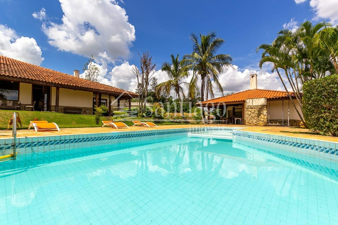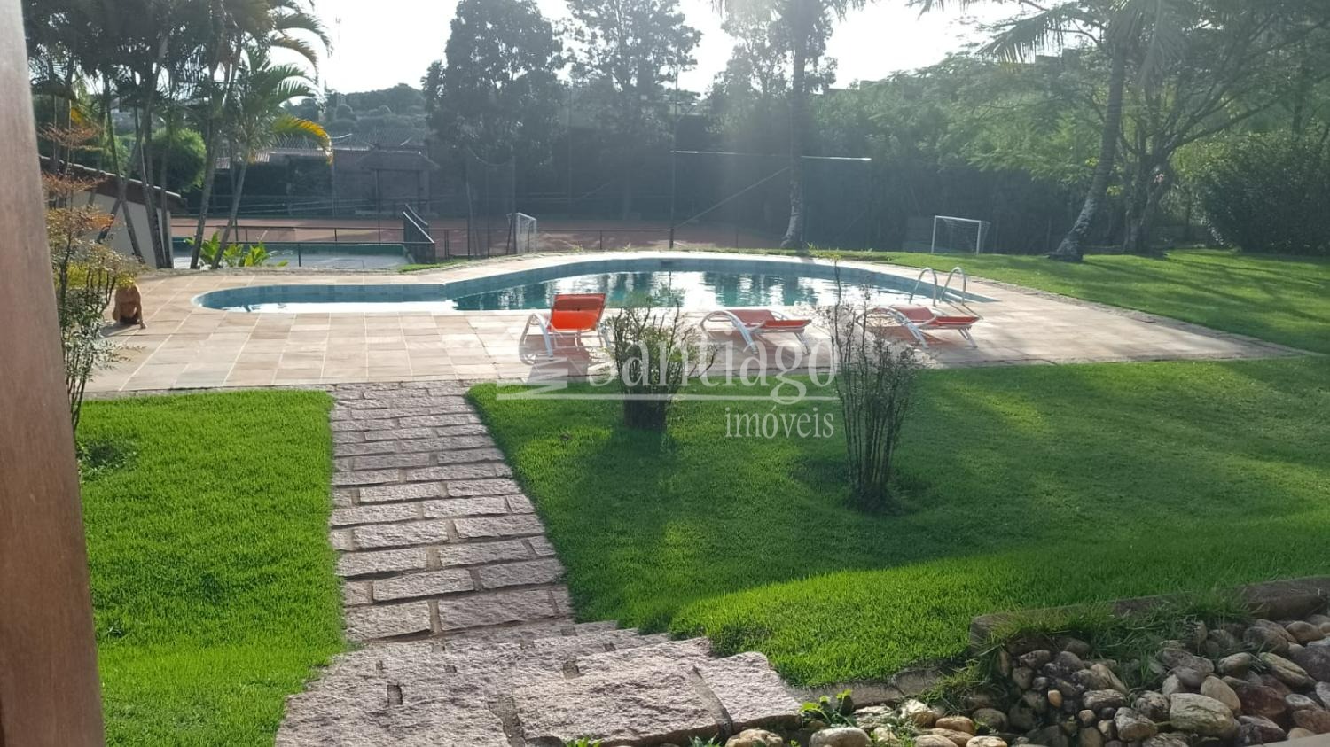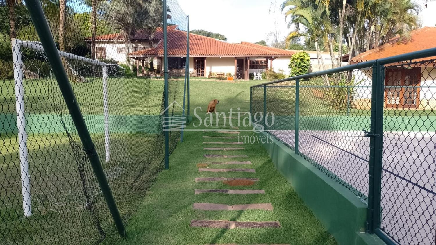 Casa à venda no bairro Sítios de Recreio Gramado em Campinas. São 5 suítes, sendo a máster com closet e banheira, banheiro com duas pias, sala de visita com 4 ambientes, avarandada, lareira, lavabo, 2 escritórios, ampla cozinha, despensa e sala de TV. Como lazer possui casa ampla de jogos com salão de festas, churrasqueira, piscina adulto e infantil, quadra de tênis de saibro, quadra de beach tênis, campo de futebol, canil e jardins. Residência com área externa reformada. Estuda permuta até 30% valor.