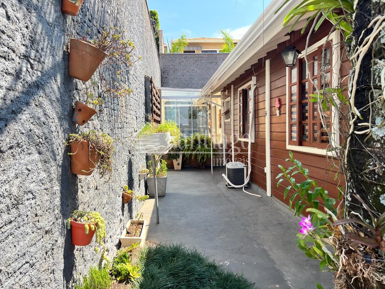 Casa mista em alvenaria e madeira, com 3 quartos, sendo uma suite. A suite possui uma varanda fechada em vidro com jacuzzi, de onde você pode contemplar o céu. Banheiro social, cozinha, copa, área de serviço coberta, quarto de despejo, sala de estar e tv voltadas para a varanda de vidro, que contempla a vista da piscina. Todos os ambientes são integrados. Casa iluminada e arejada.