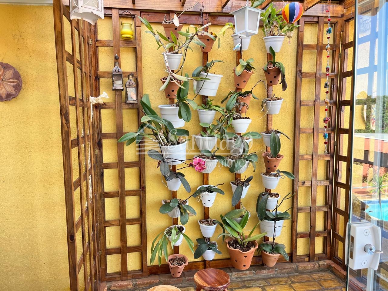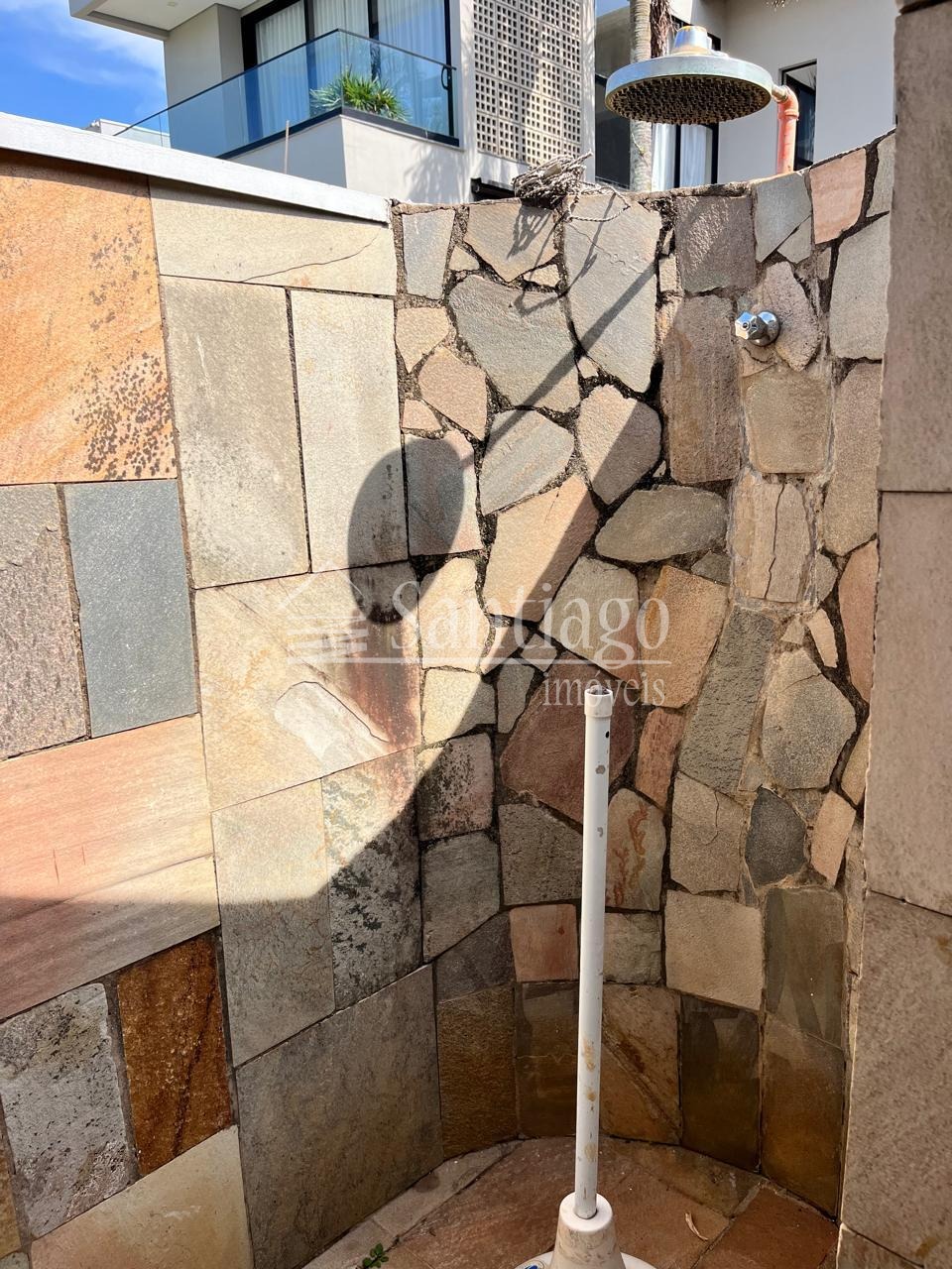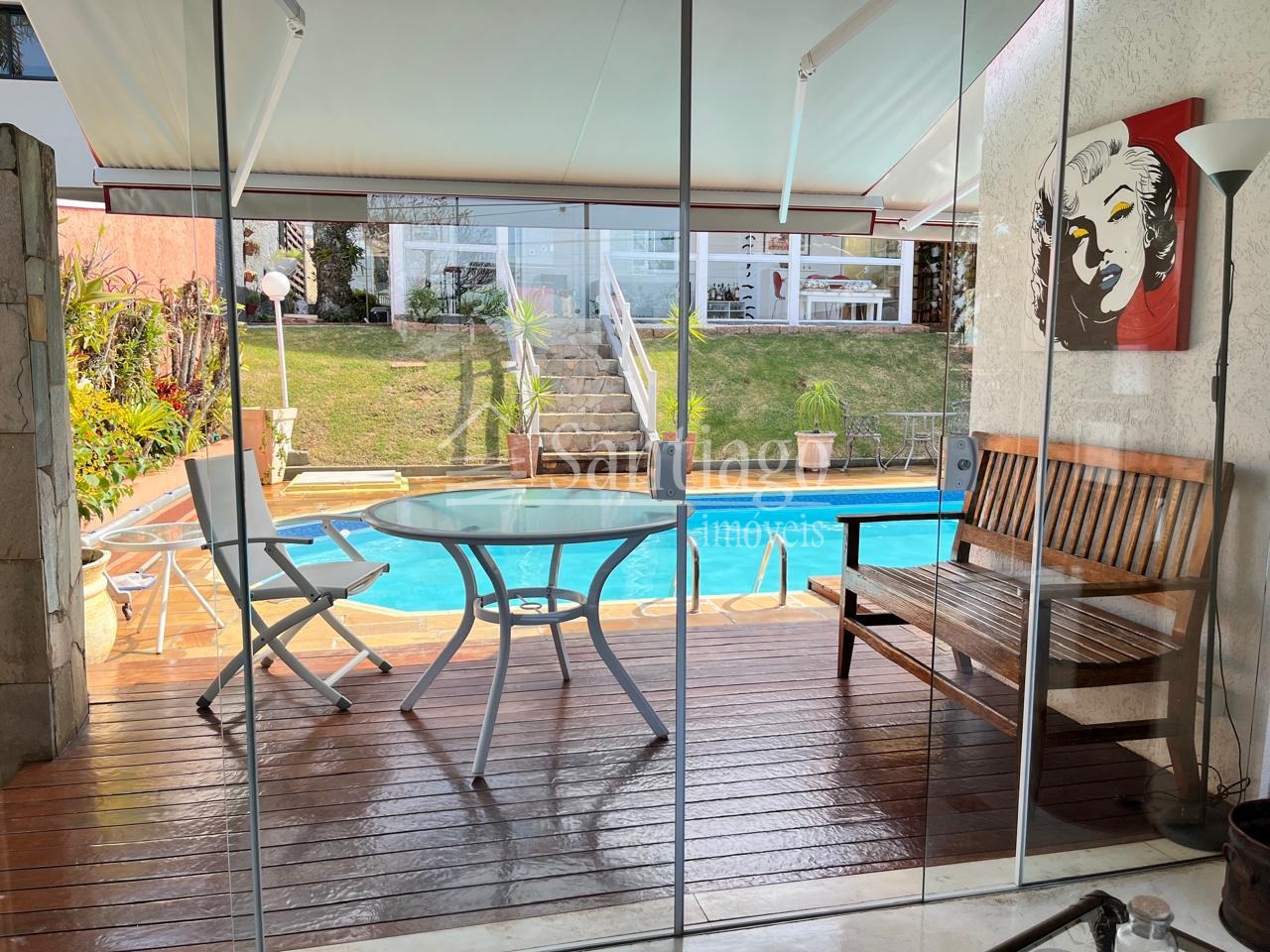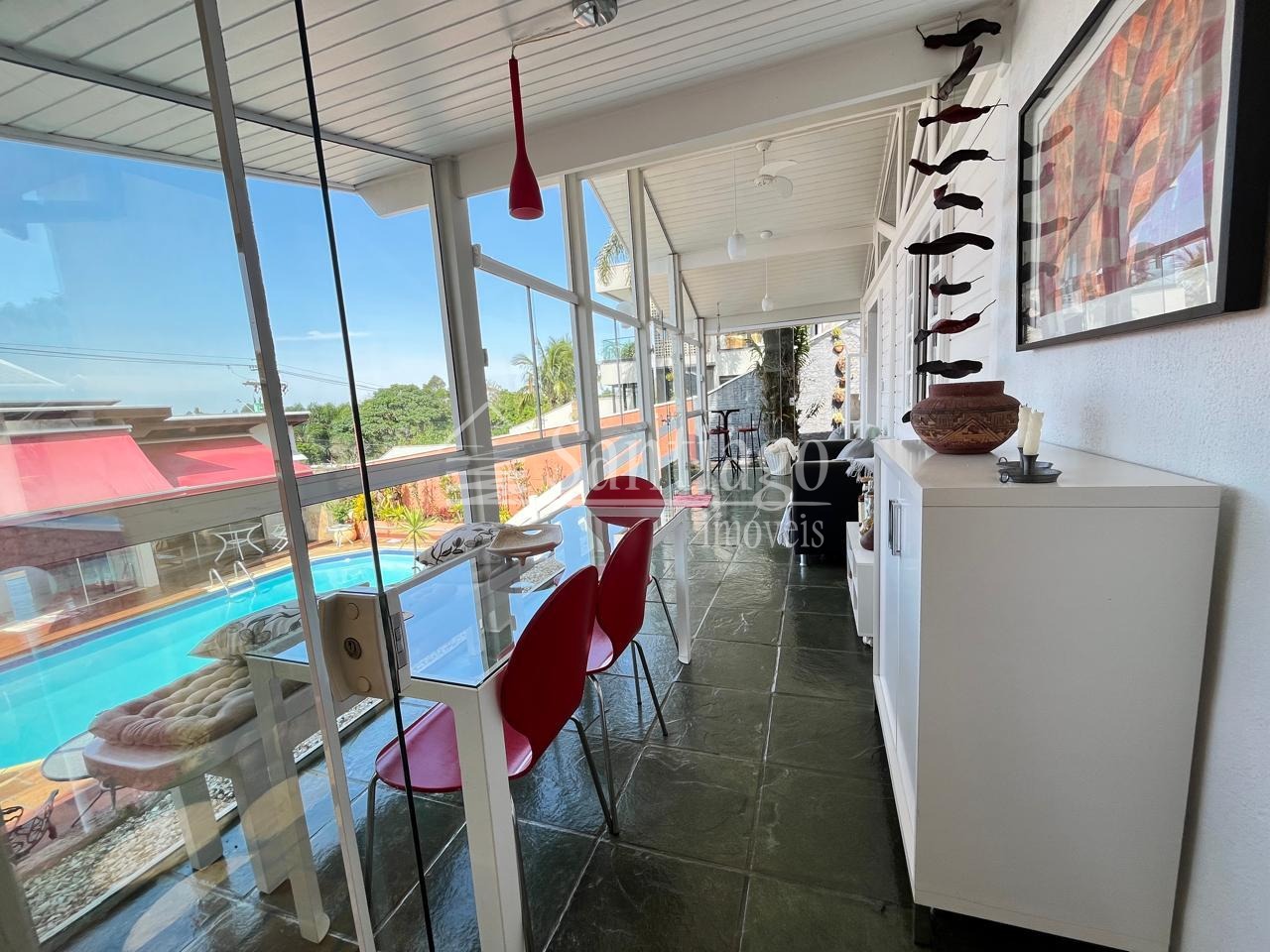 Espaço gourmet completo com fechamento em vidro, a piscina fica entre o espaço gourmet e a casa principal. Ducha. Jardim com paisagismo.