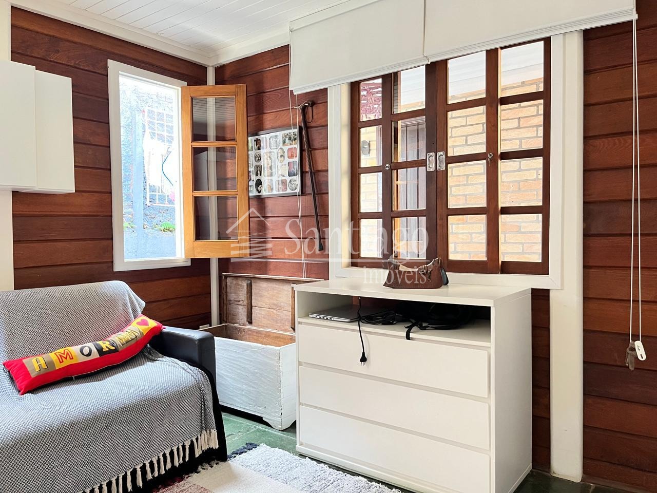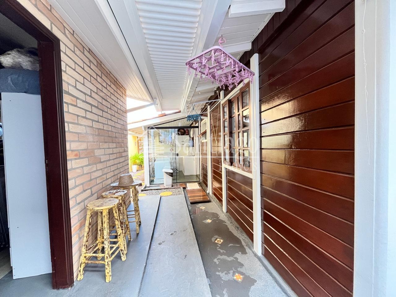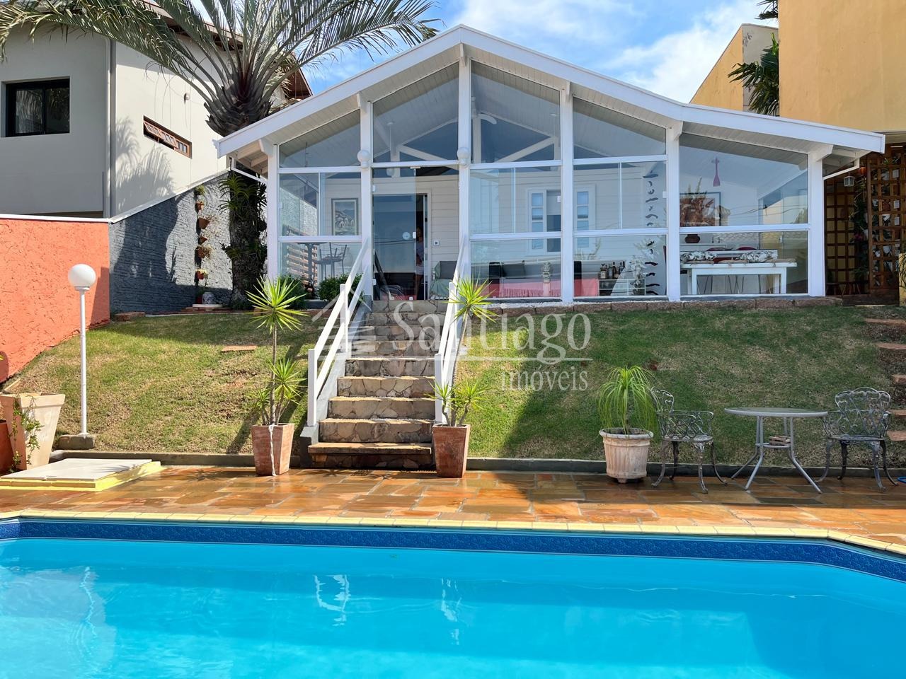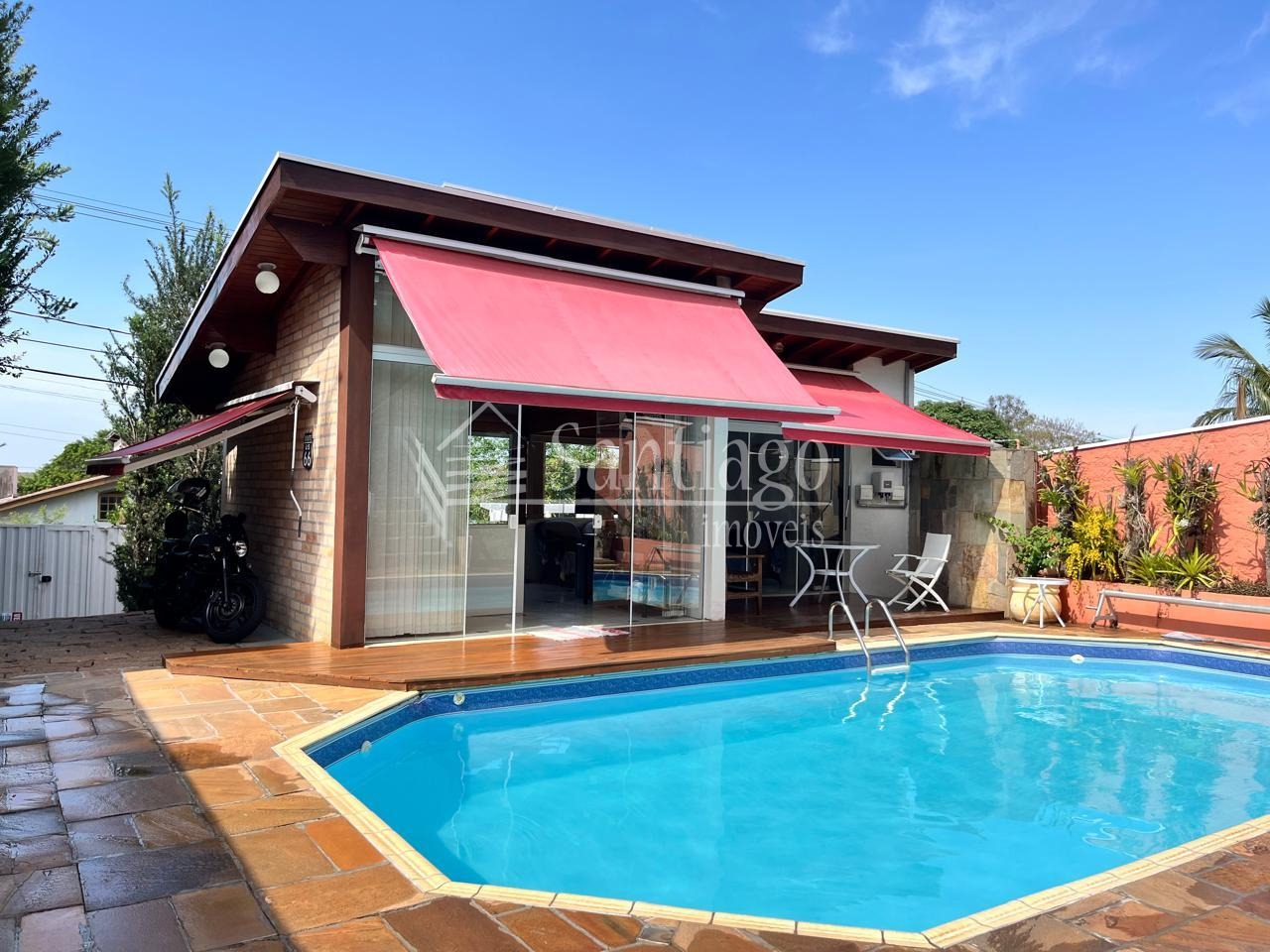 Casa mista em alvenaria e madeira, com 3 quartos, sendo uma suite. A suite possui uma varanda fechada em vidro com jacuzzi, de onde você pode contemplar o céu. Banheiro social, cozinha, copa, área de serviço coberta, quarto de despejo, sala de estar e tv voltadas para a varanda de vidro, que contempla a vista da piscina. Todos os ambientes são integrados. Casa iluminada e arejada.