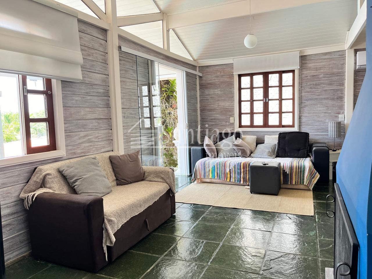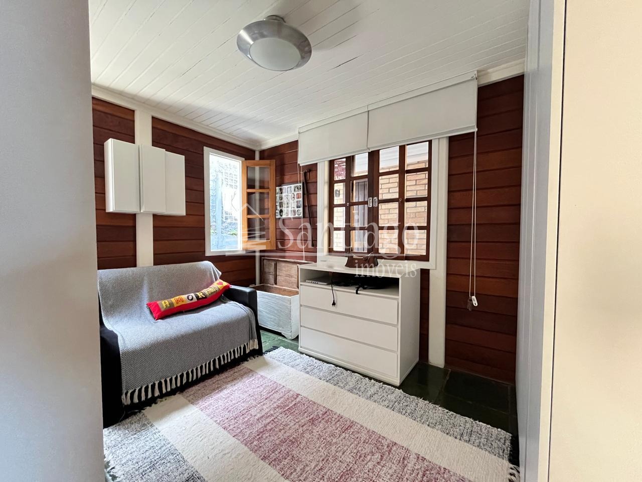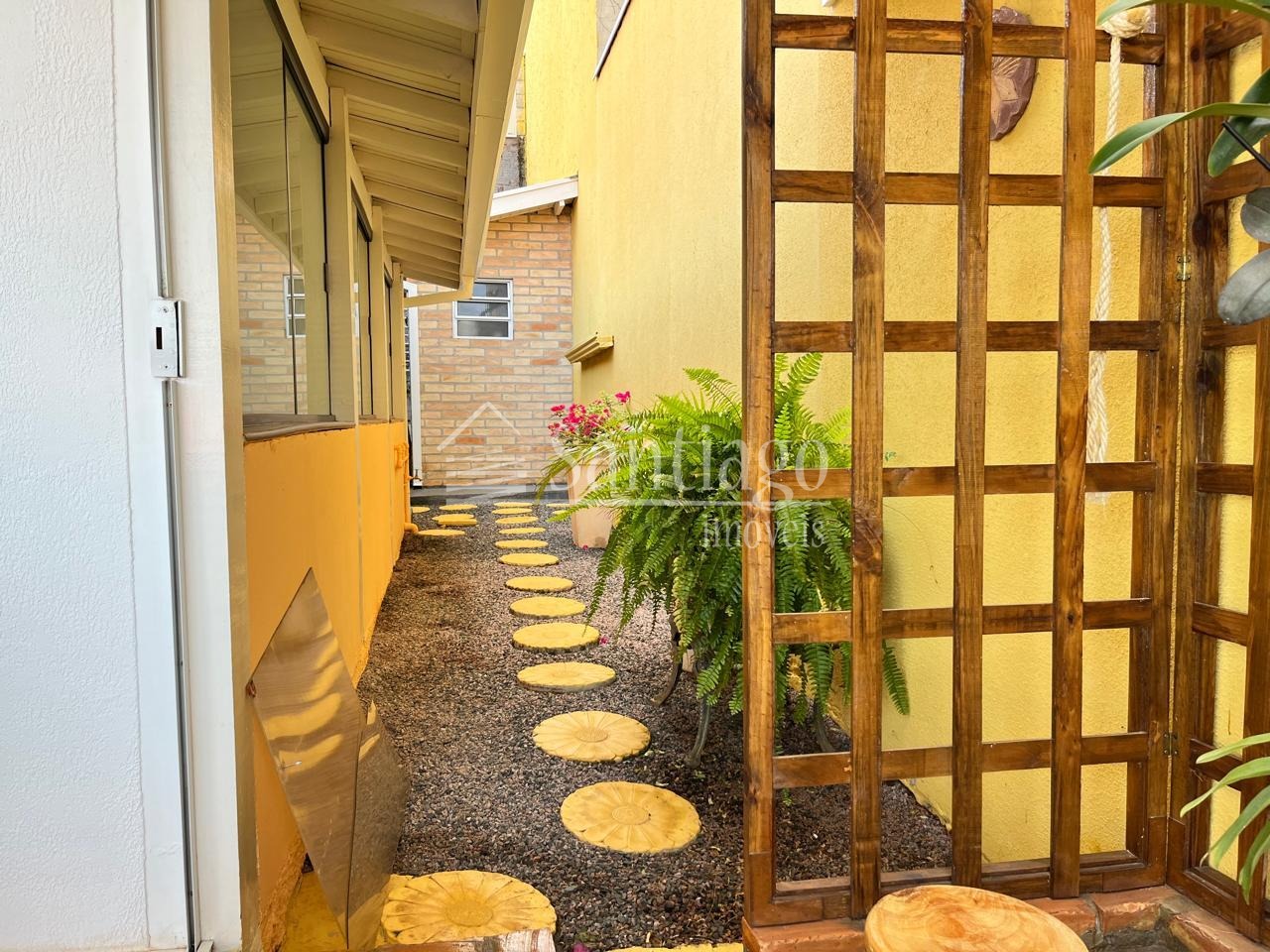 Casa mista em alvenaria e madeira, com 3 quartos, sendo uma suite. A suite possui uma varanda fechada em vidro com jacuzzi, de onde você pode contemplar o céu. Banheiro social, cozinha, copa, área de serviço coberta, quarto de despejo, sala de estar e tv voltadas para a varanda de vidro, que contempla a vista da piscina. Todos os ambientes são integrados. Casa iluminada e arejada.