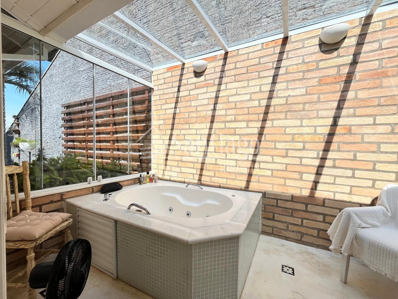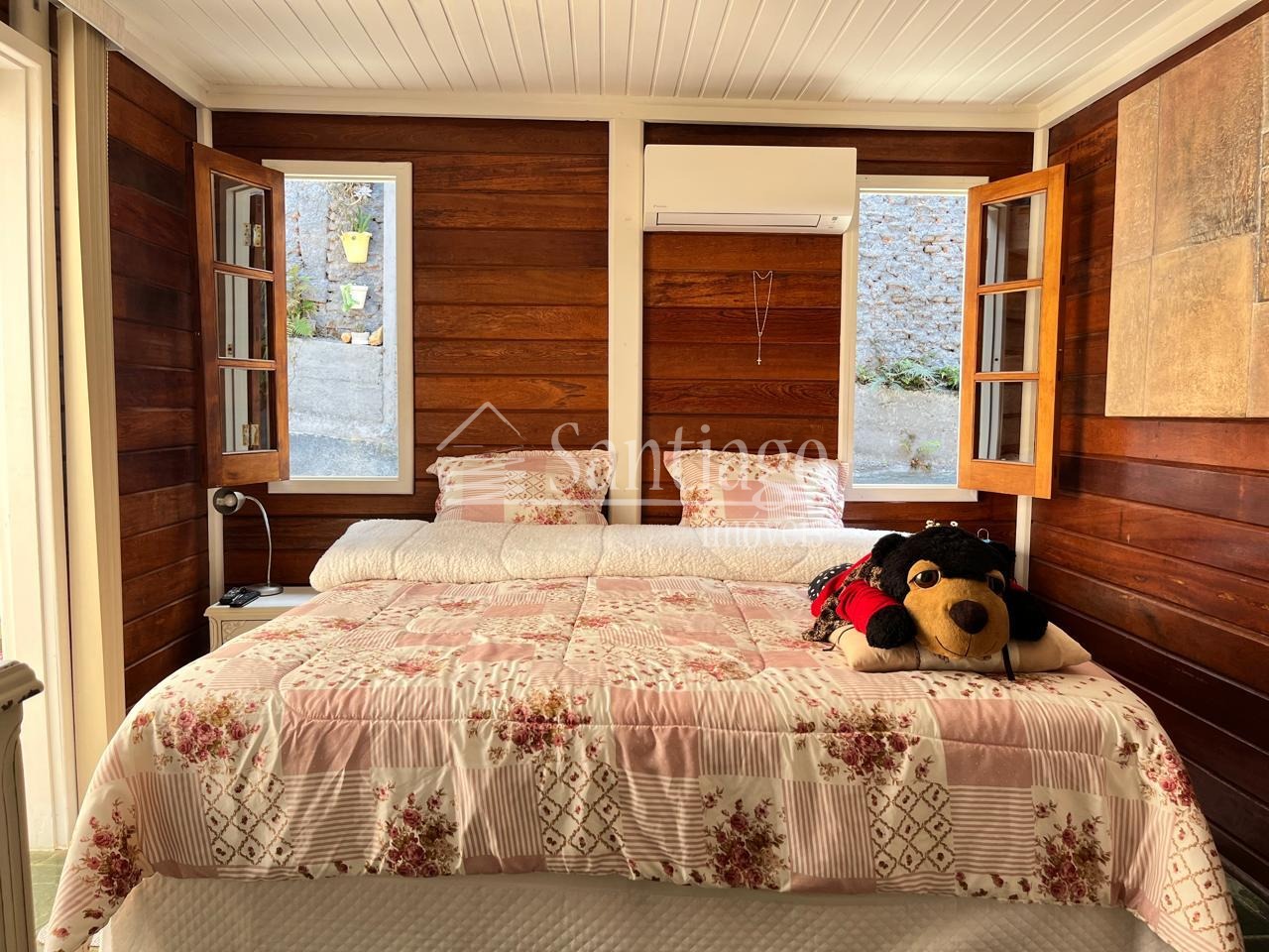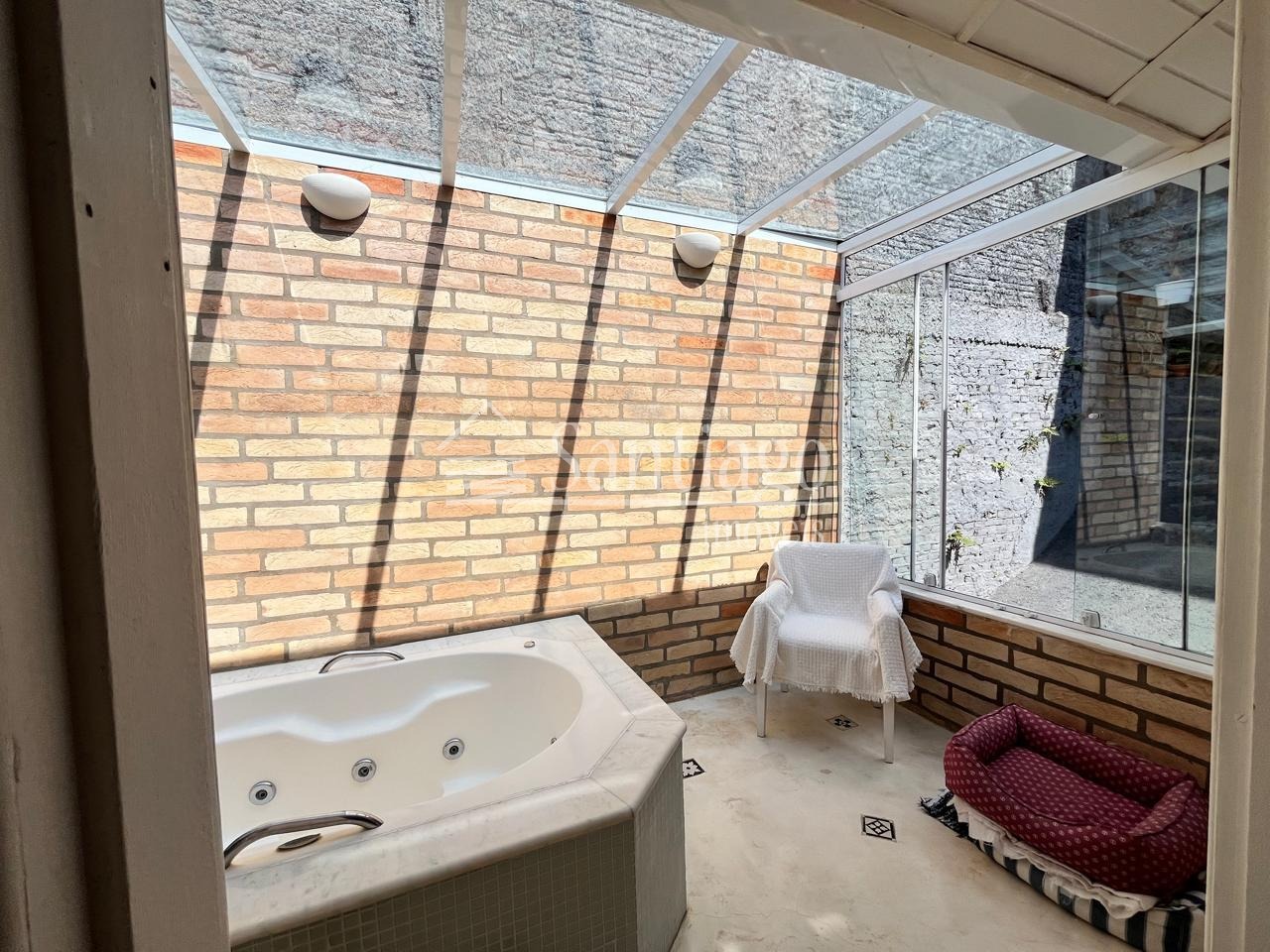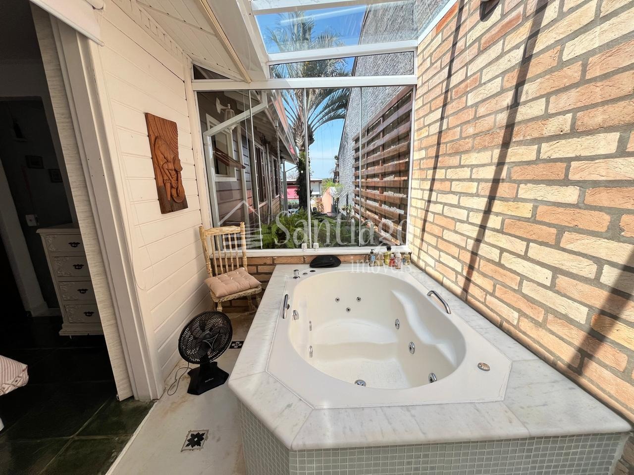 Casa mista em alvenaria e madeira, com 3 quartos, sendo uma suite. A suite possui uma varanda fechada em vidro com jacuzzi, de onde você pode contemplar o céu. Banheiro social, cozinha, copa, área de serviço coberta, quarto de despejo, sala de estar e tv voltadas para a varanda de vidro, que contempla a vista da piscina. Todos os ambientes são integrados. Casa iluminada e arejada.