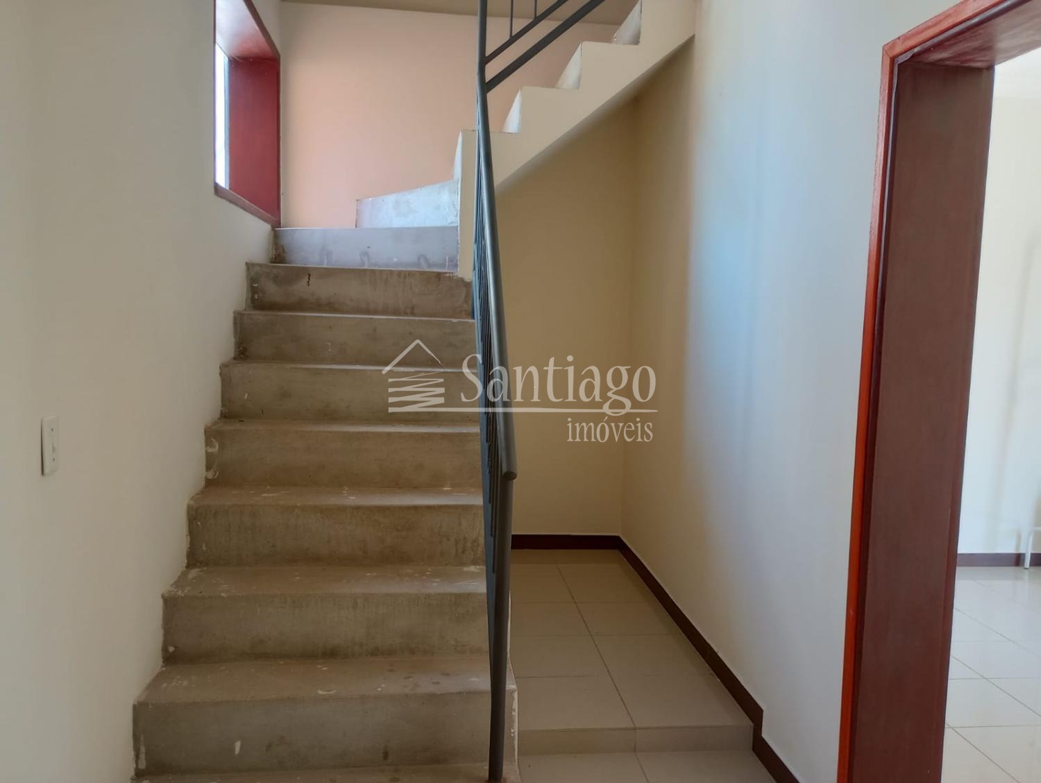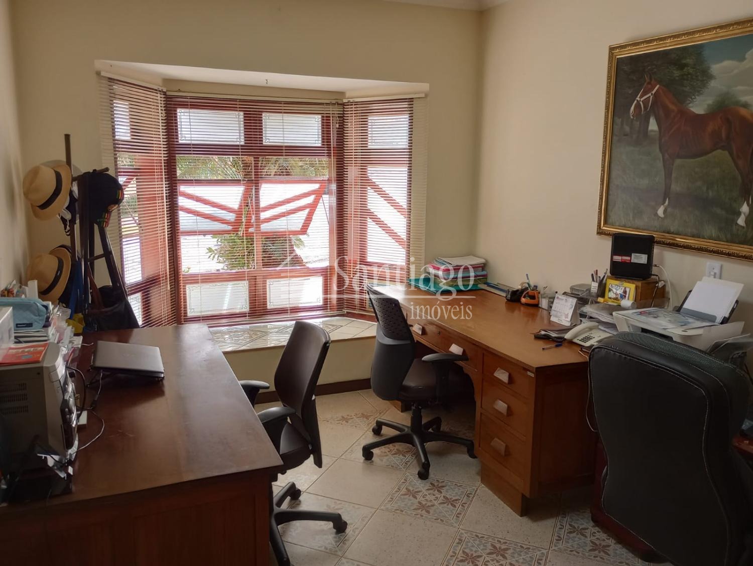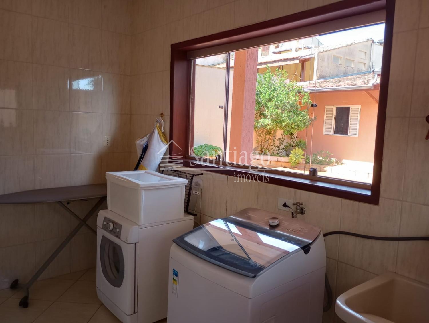 Piso inferior com lavabo, escritório, copa, cozinha, área de serviço.