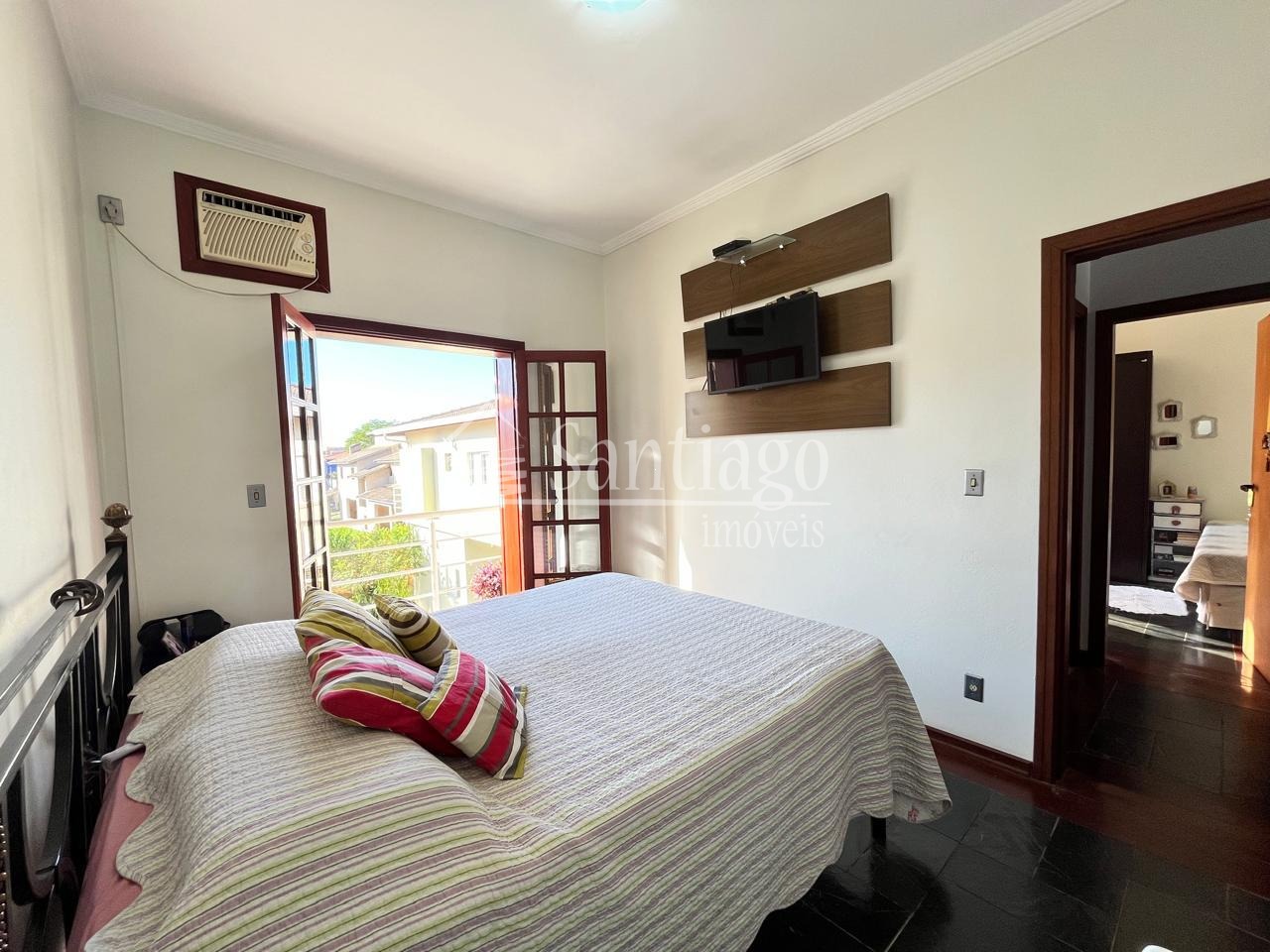 Piso superior com 3 quartos, sendo 1 suíte com varanda e closet. Banheiro social. Um dos quartos possui um mezanino que pode ser usado como escritório.