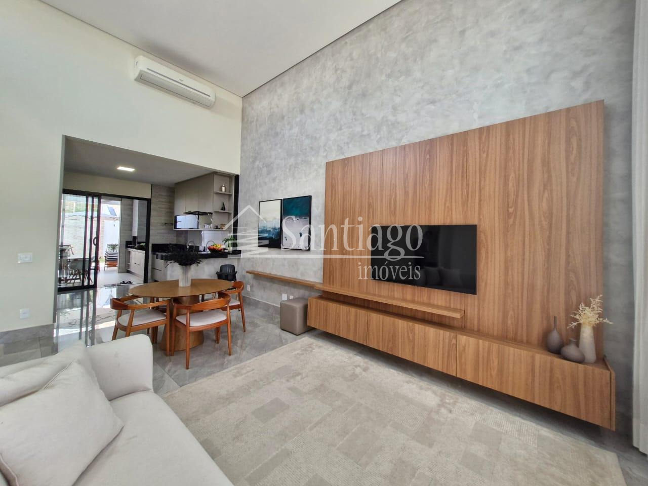 à venda no Condomínio Residencial Bella Campinas - Parque Rural Fazenda Santa Cândida, a casa conta com uma ampla sala de dois ambientes com ar-condicionado, cozinha planejada equipada com cooktop, coifa e forno embutido, além de três suítes com armários planejados. Dispõe também de uma área gourmet com churrasqueira e armários planejados e uma lavanderia funcional. O espaço externo oferece o ambiente ideal para quem deseja instalar uma piscina ou jacuzzi, agregando ainda mais valor e lazer ao imóvel. A garagem comporta até quatro veículos, proporcionando comodidade para a família e visitantes. Esse condomínio totalmente exclusivo possui apenas 37 lotes, e conta com salão de festas, piscina, portaria 24h, segurança 24h e fácil acesso aos principais serviços e comércios da região como, por exemplo, à Clínica Dr. Pedro Serafim, Hospital Madre Theodora e à Pontifícia Universidade Católica de Campinas (PUCCAMP). Agende sua visita com á Santiago Imóveis!
