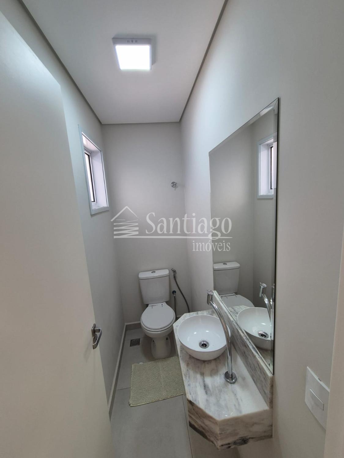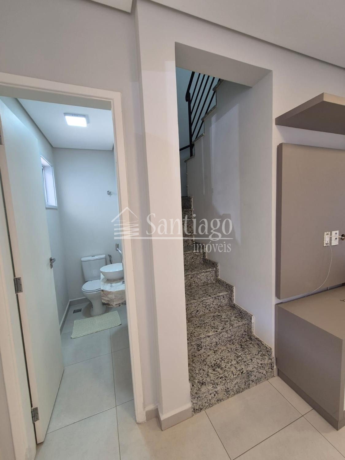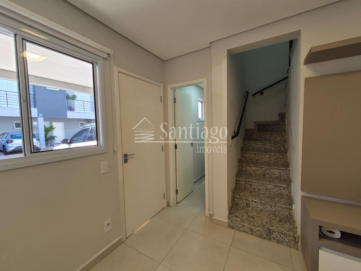 Sobrado em estado de novo, com 97m², composto por 3 quartos, sendo uma suíte, sala para dois ambientes, cozinha americana, lavabo e área de serviço independente. O imóvel oferece ótimo padrão de acabamento, piso em porcelanato, infraestrutura para ar condicionado, armários planejados, aquecimento a gás e 2 vagas de garagem. Agende sua visita com Santiago Imoveis!