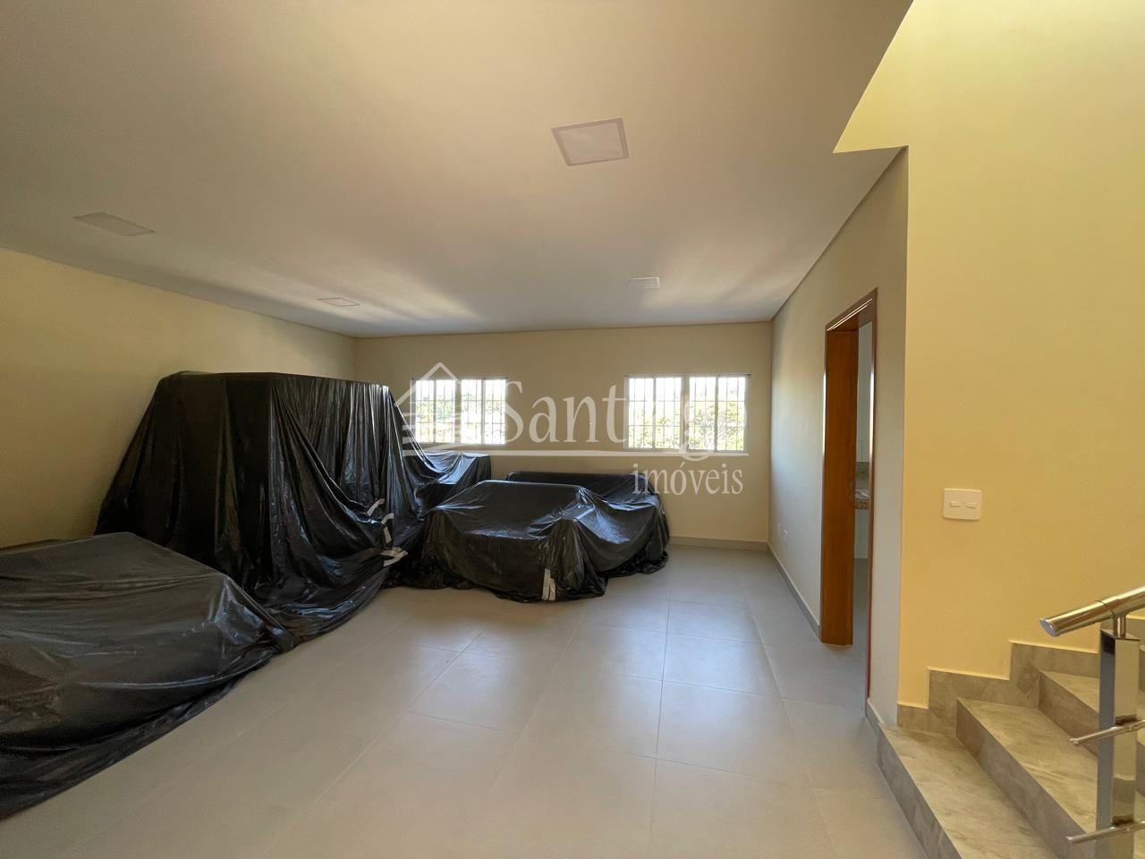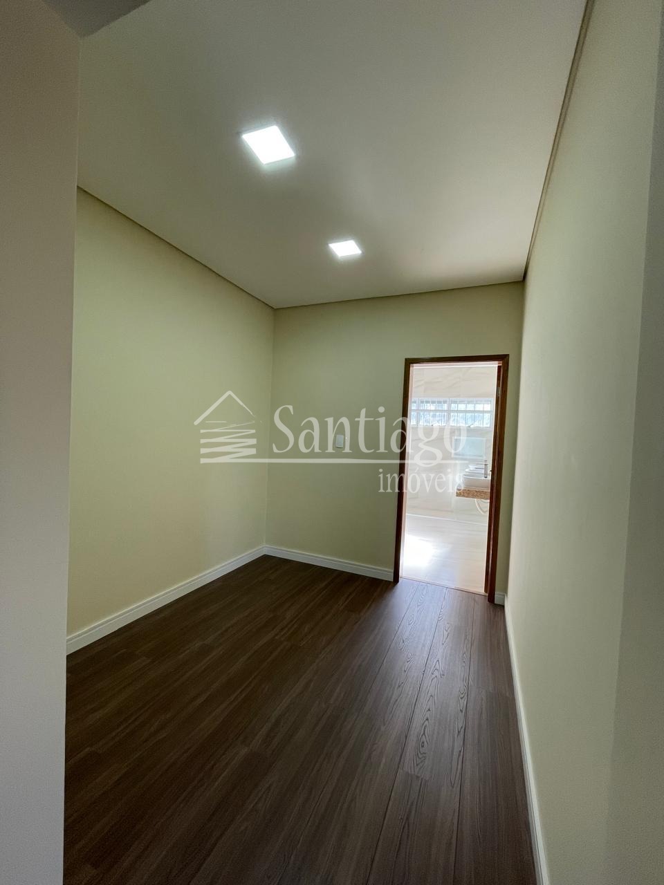 Térreo: Garagem para 6 veículos, sendo 3 cobertas, sala 2 ambientes, escritório com WC completo, pode ser revertido para uma outra suíte, cozinha, área de serviço, pequena despensa e WC de empregada.