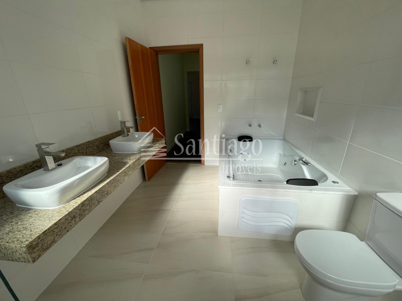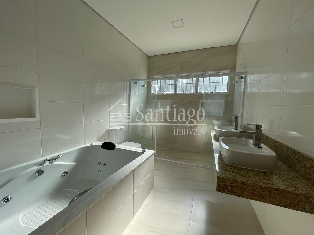 Andar superior: 3 suítes, sendo uma máster com sala íntima, closet, WC completo com lavatórios duplos, chuveiros/duchas duplos e banheira de hidro para casal.
