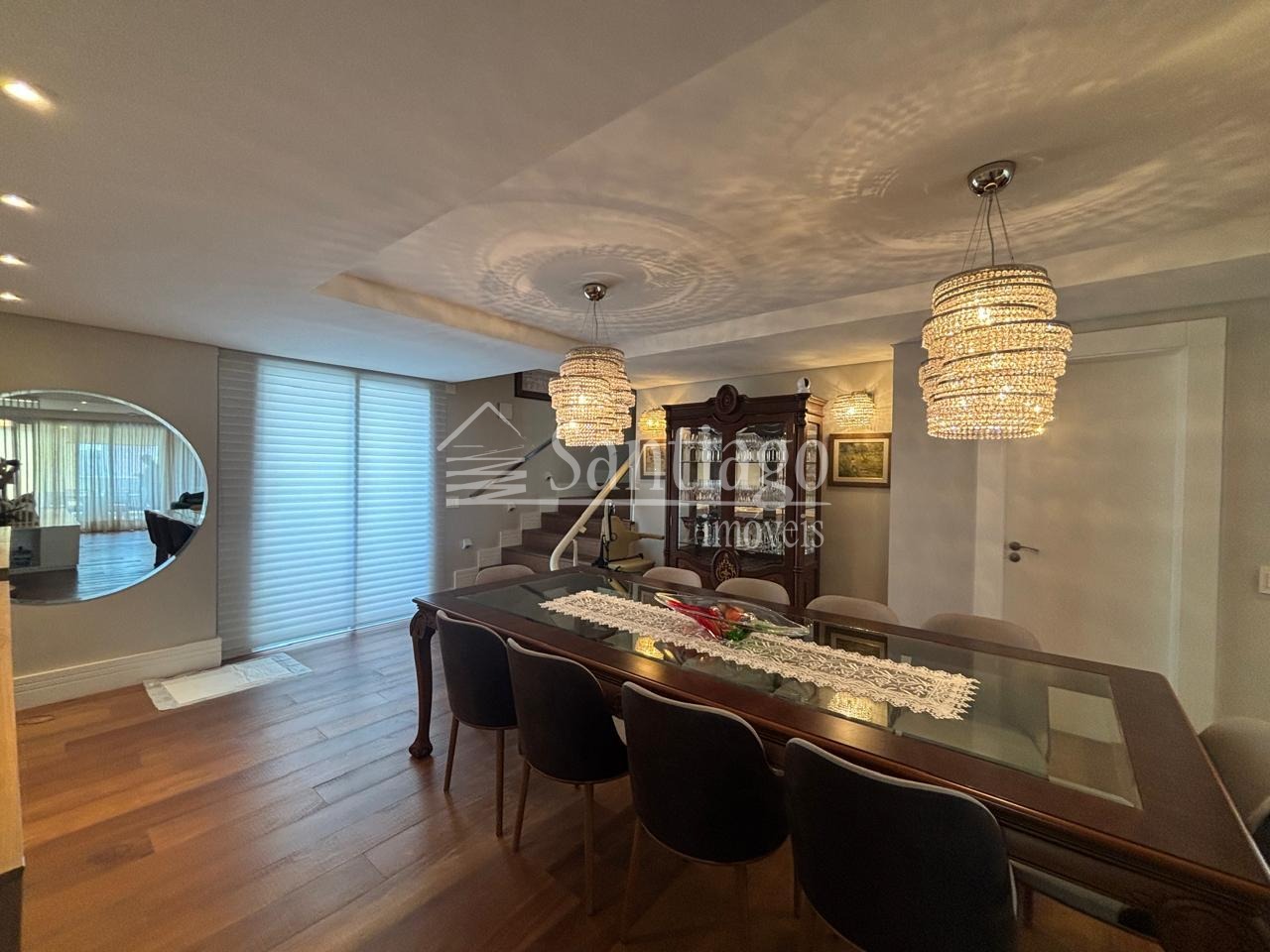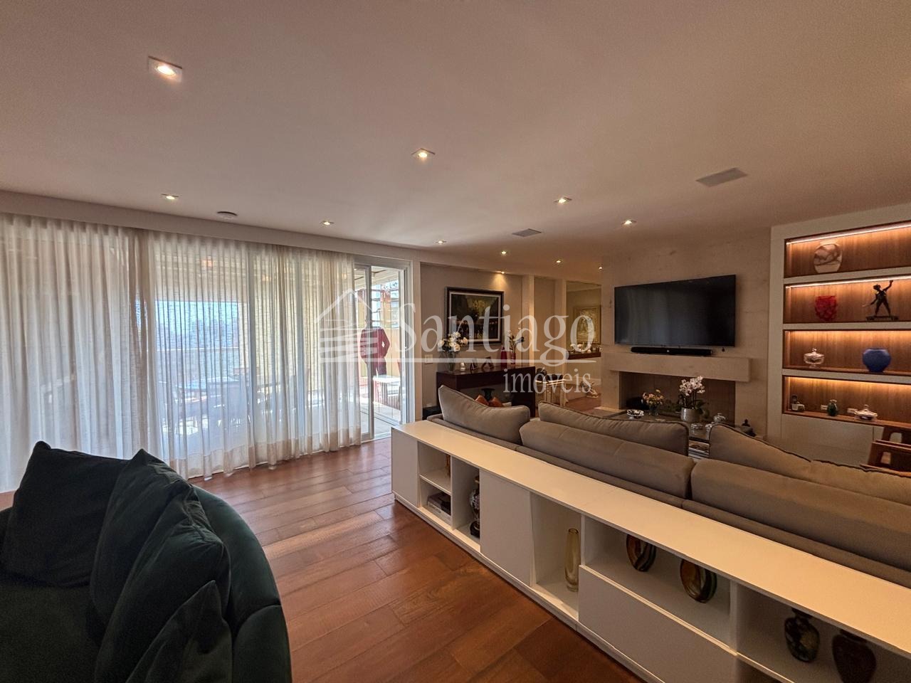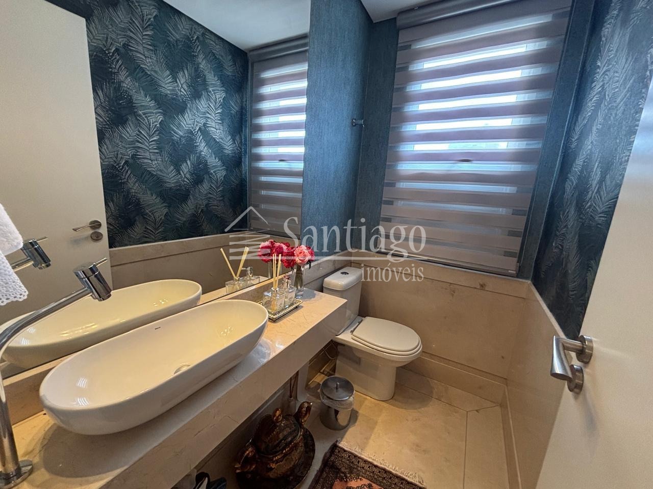 Living para 4 distintos ambientes, lavabo, lareira e ar condicionado central, tudo integrado ao espaço gourmet e uma convidativa piscina, cadeira motorizada para acesso ao piso superior, cozinha finamente planejada e despensa, área de serviço com dependência completa de empregada. 5 vagas de garagens paralelas. Agende sua visita com Santiago Imóveis!