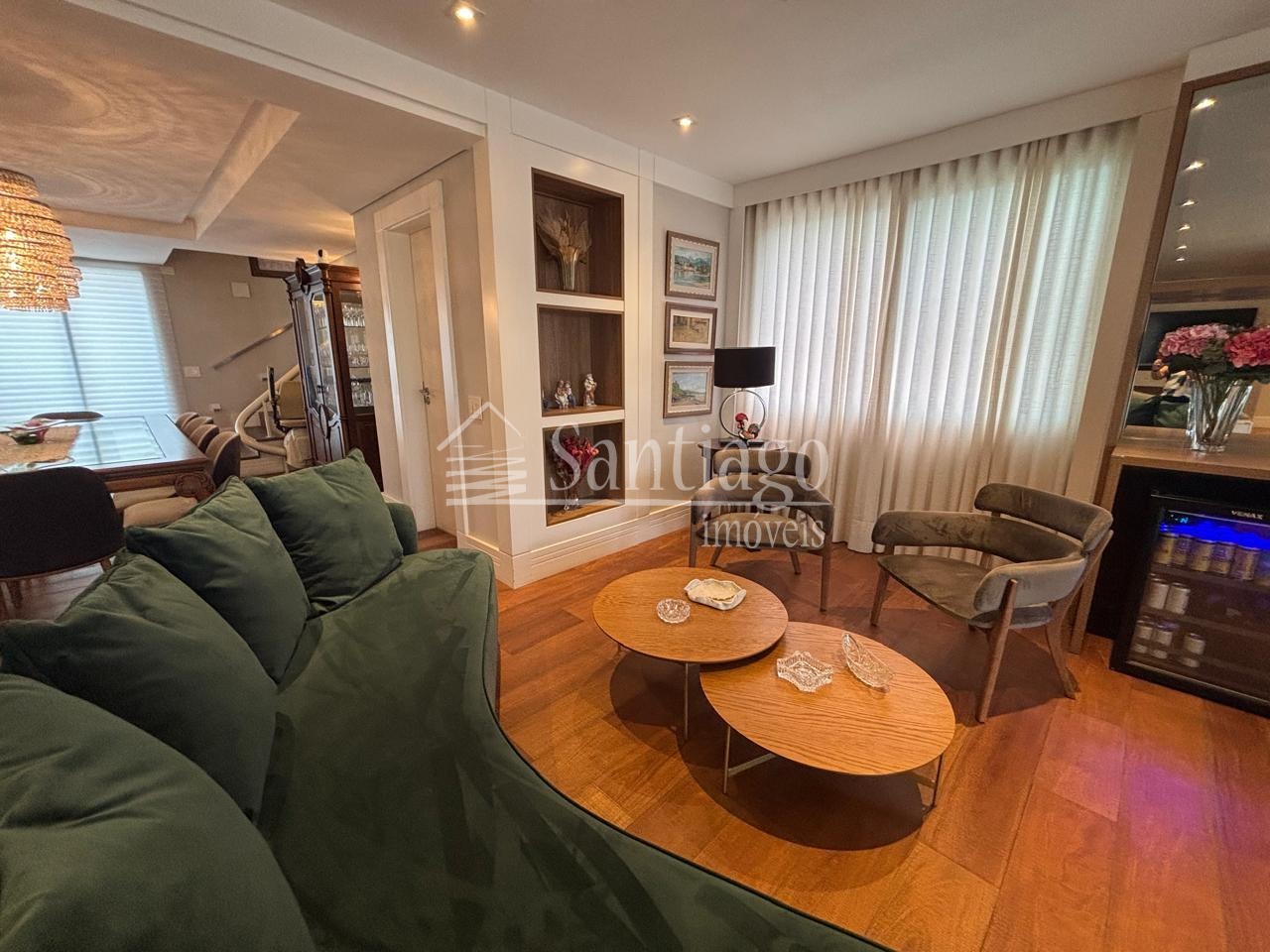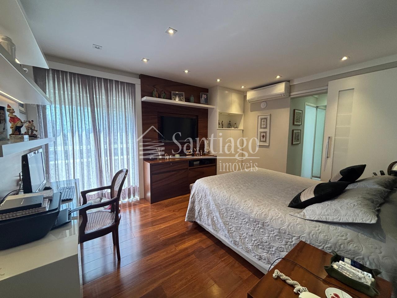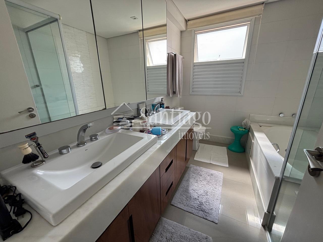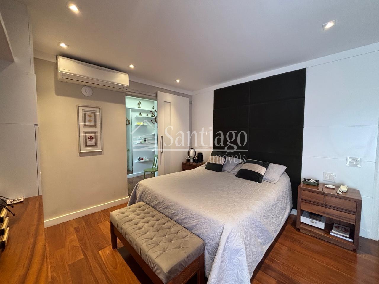Living para 4 distintos ambientes, lavabo, lareira e ar condicionado central, tudo integrado ao espaço gourmet e uma convidativa piscina, cadeira motorizada para acesso ao piso superior, cozinha finamente planejada e despensa, área de serviço com dependência completa de empregada. 5 vagas de garagens paralelas. Agende sua visita com Santiago Imóveis!
