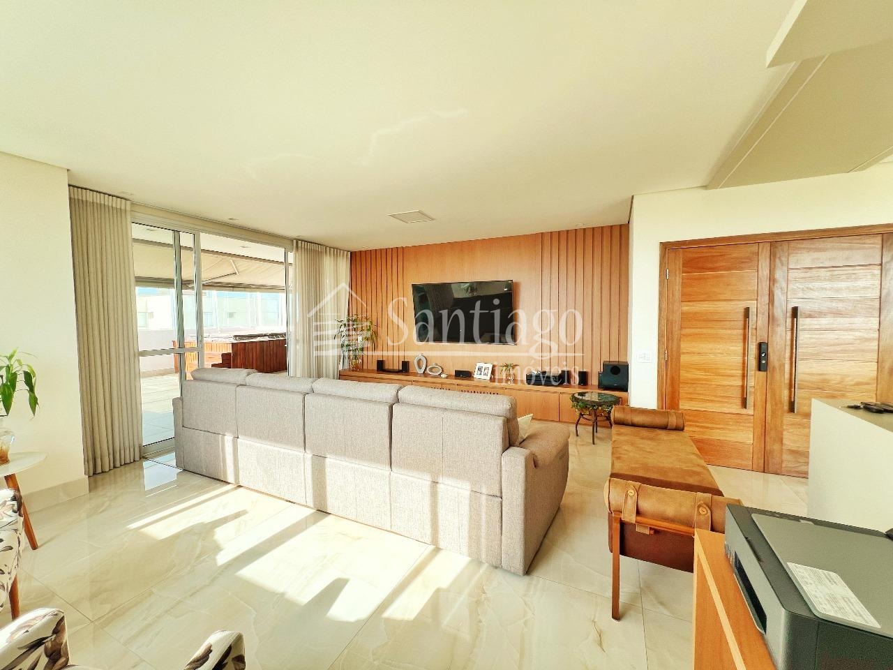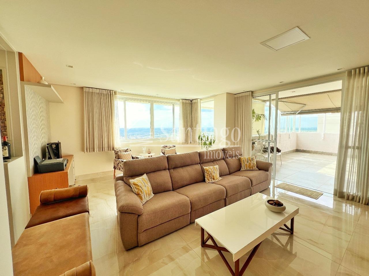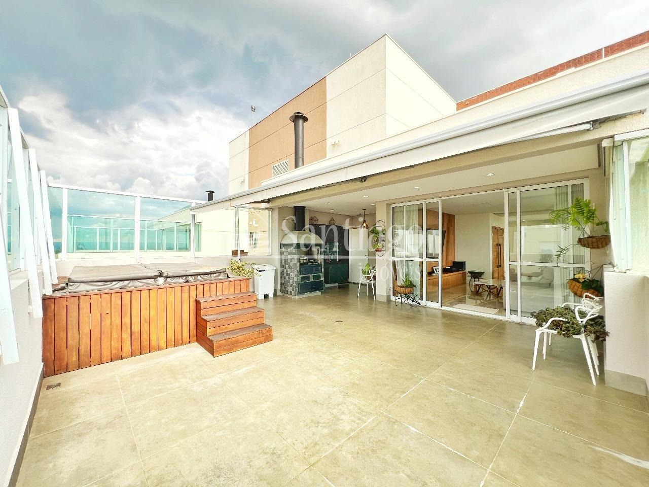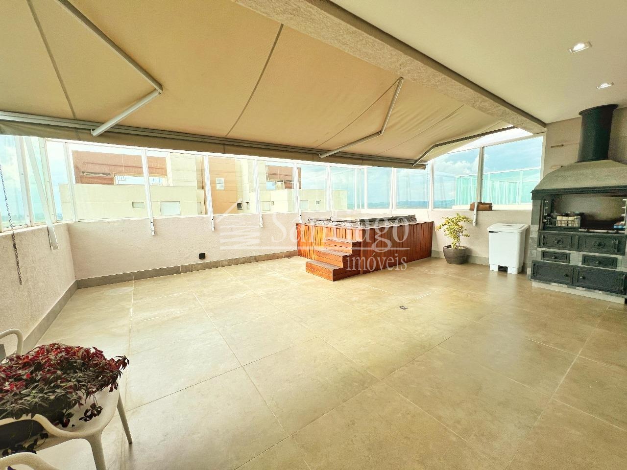 Cobertura a venda com 382m² de puro luxo, esta cobertura conta com 4 quartos, sendo três suítes, ar condicionado, um closet espaçoso e armários planejados que fazem toda a diferença. Com duas salas amplas para estar e jantar, além de uma sala de TV, garagem para quatro carros, depósito privativo e hall exclusivo, dois elevadores, varanda gourmet, completo com churrasqueira e jacuzzi. Agende sua visita com à Santiago Imóveis!