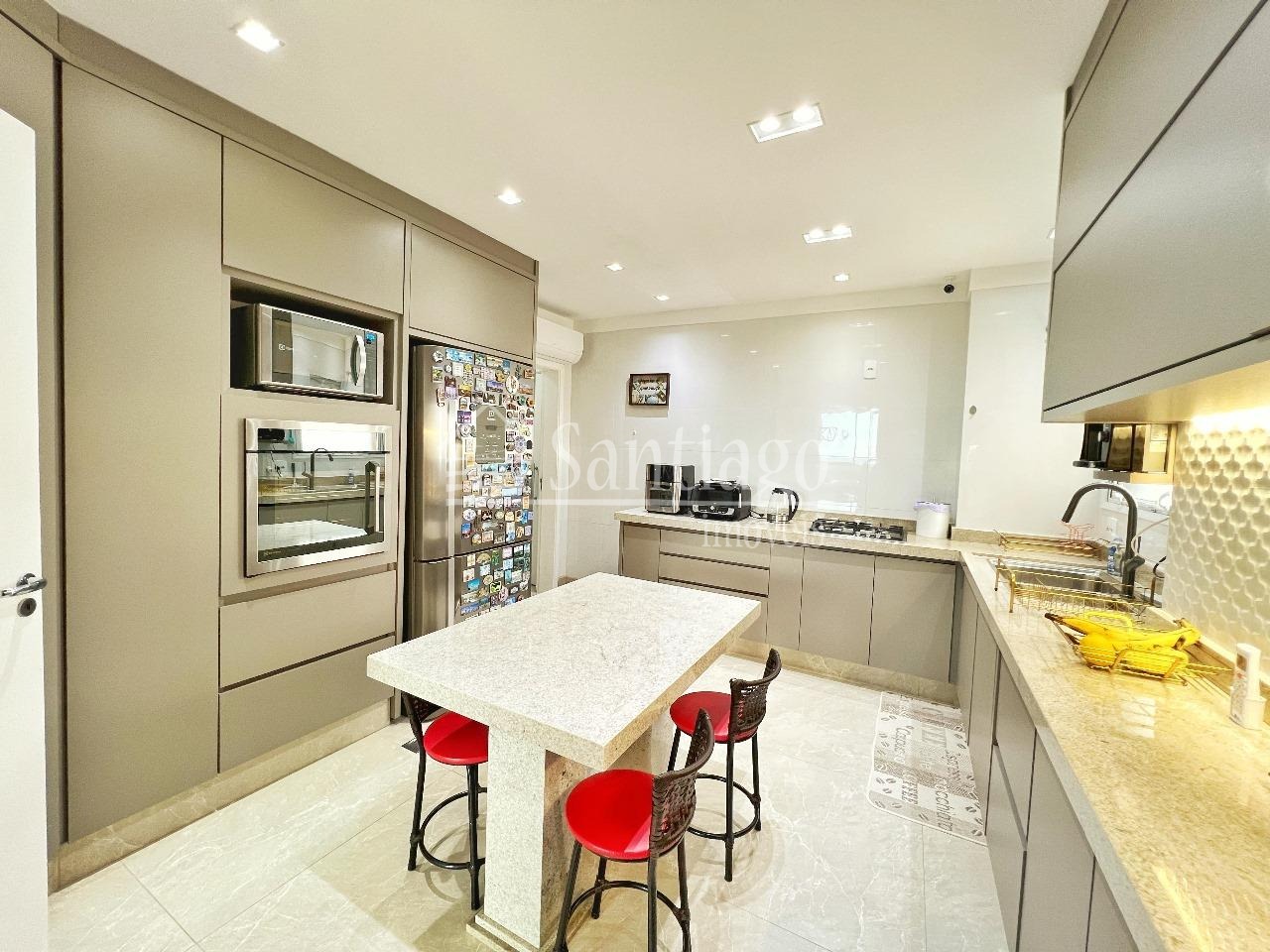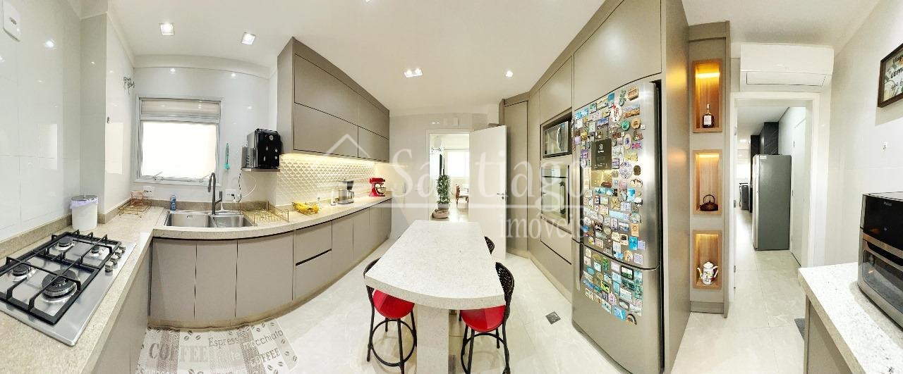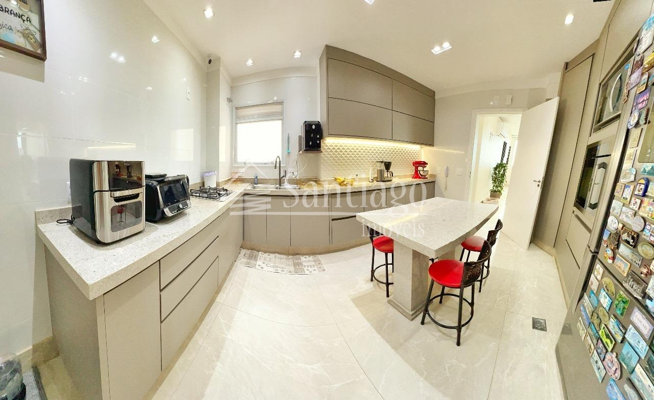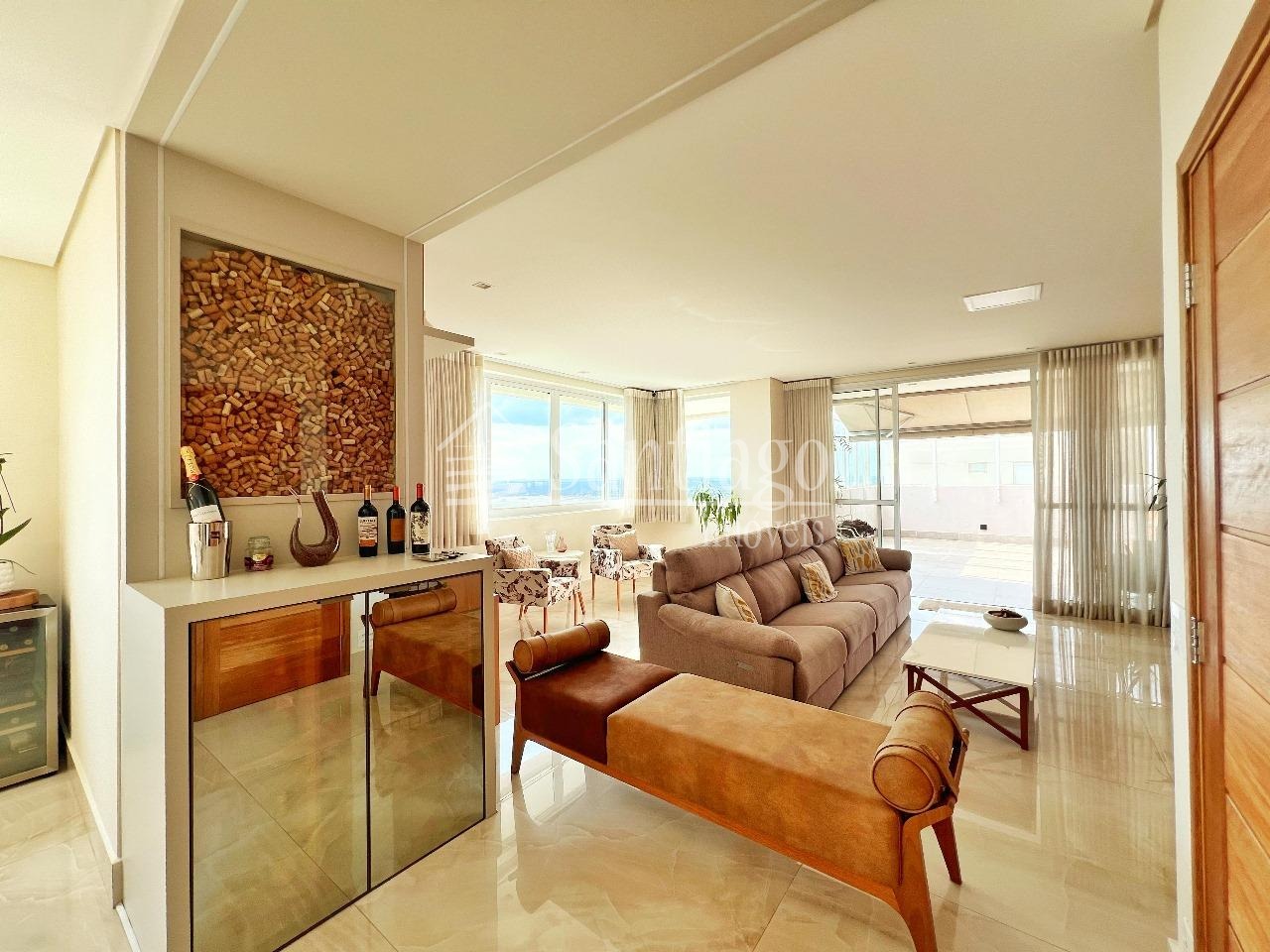 Cobertura a venda com 382m² de puro luxo, esta cobertura conta com 4 quartos, sendo três suítes, ar condicionado, um closet espaçoso e armários planejados que fazem toda a diferença. Com duas salas amplas para estar e jantar, além de uma sala de TV, garagem para quatro carros, depósito privativo e hall exclusivo, dois elevadores, varanda gourmet, completo com churrasqueira e jacuzzi. Agende sua visita com à Santiago Imóveis!