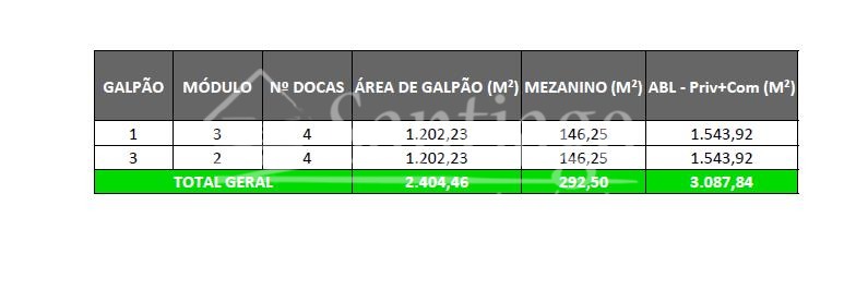 Destaques do Módulo Disponível (Galpão 3 - Módulo 2):